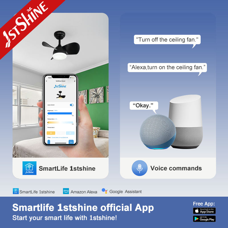 1stshine Ventilador de techo LED 20 pulgadas 3 aspas ABS negras Ventilador de techo de ahorro de energía remoto con luz LED