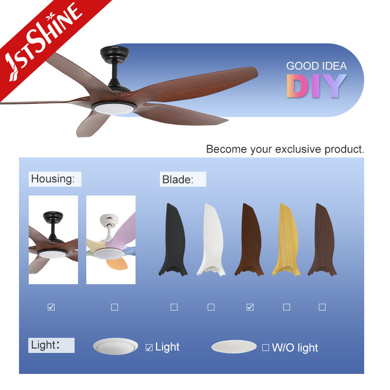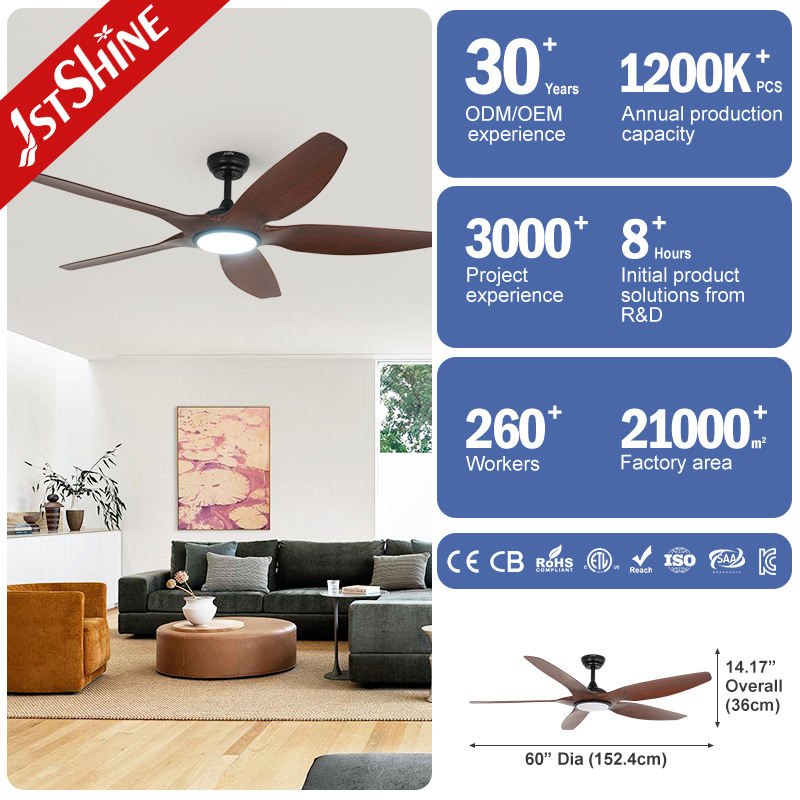 1stshine LED ventilador de techo 60 pulgadas 5 aspas de plástico control remoto LED ventilador de techo Luz