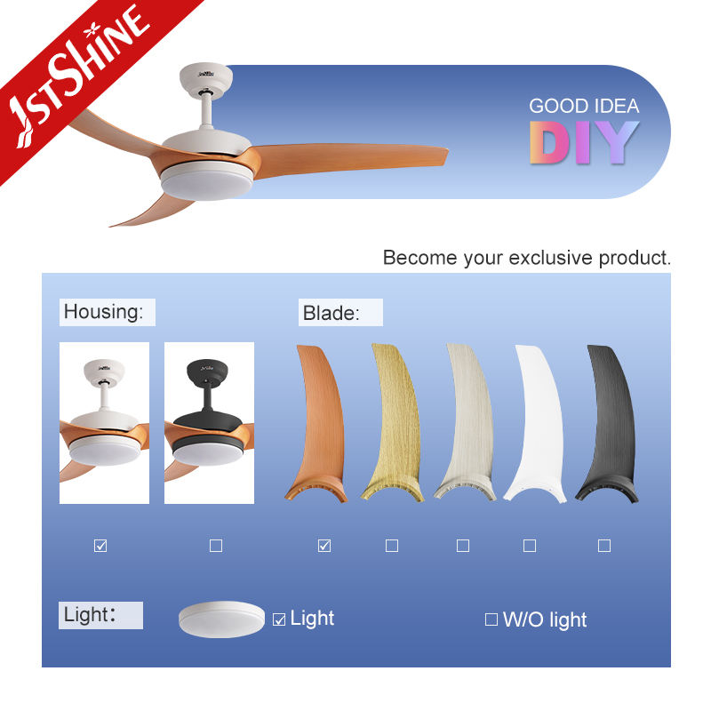 1 ventilador de techo LED brillante, diseño de aspas ABS, ventilador de techo con luz LED de 3 colores con control remoto inteligente
