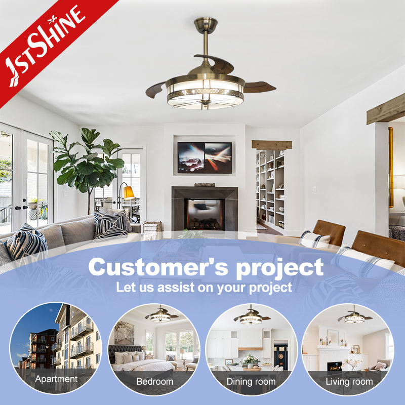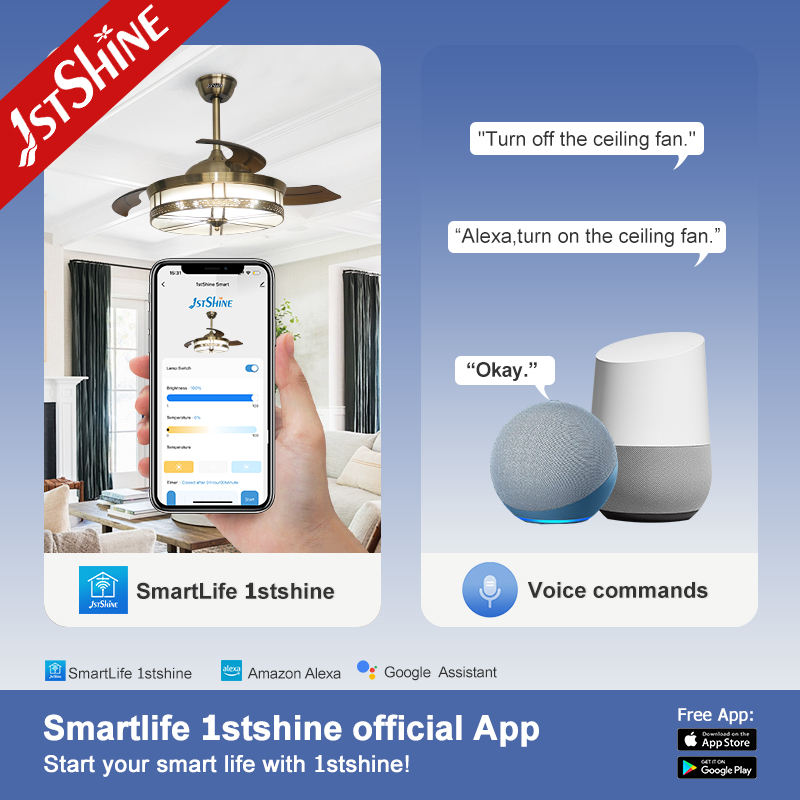 Ventilador de techo con luces LED, ventilador de techo con motor de CC de cobre puro, ahorro de energía con cuchillas ocultos, 1 unidad