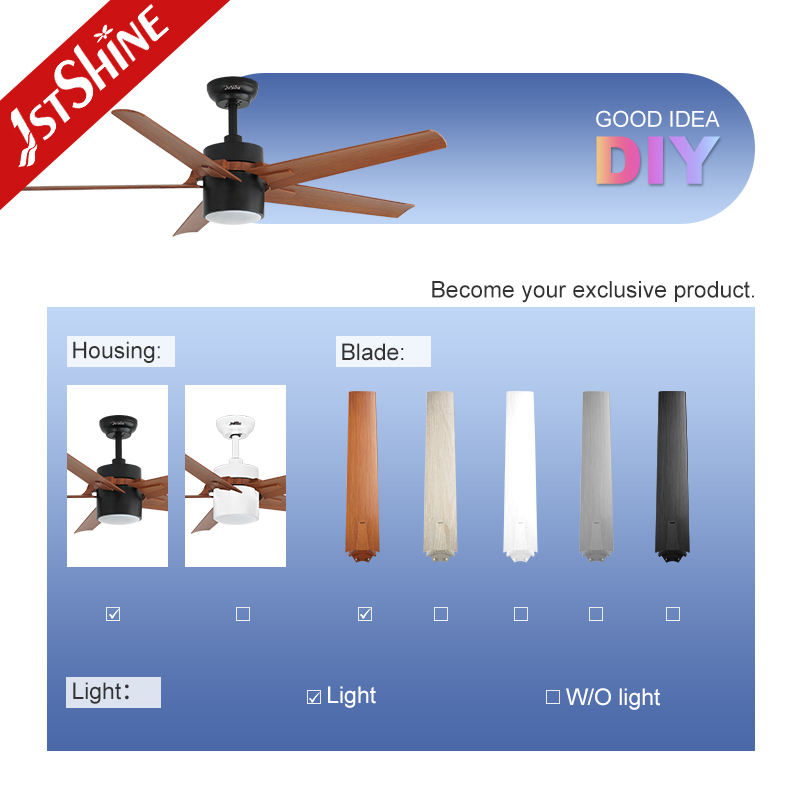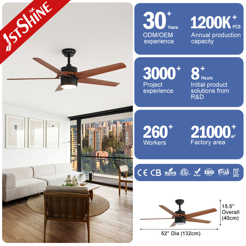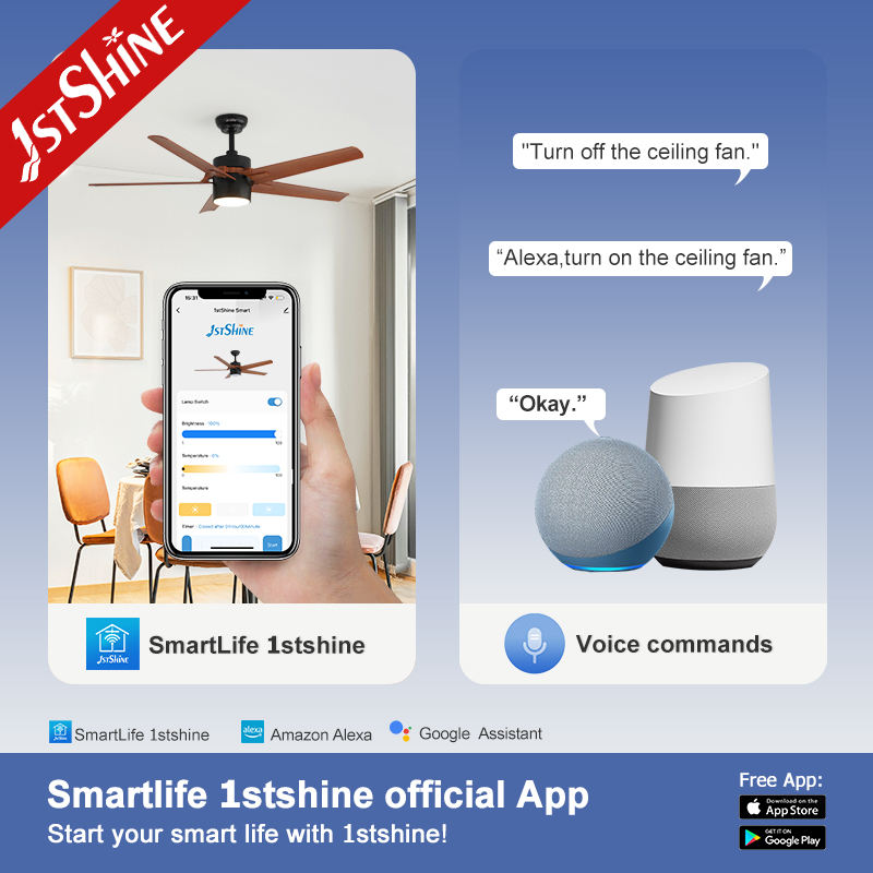 1stshine Led Ventilador de techo 52 pulgadas 5 aspas ABS 3 colores Iluminación LED Ahorro de energía Ventilador de techo con luz