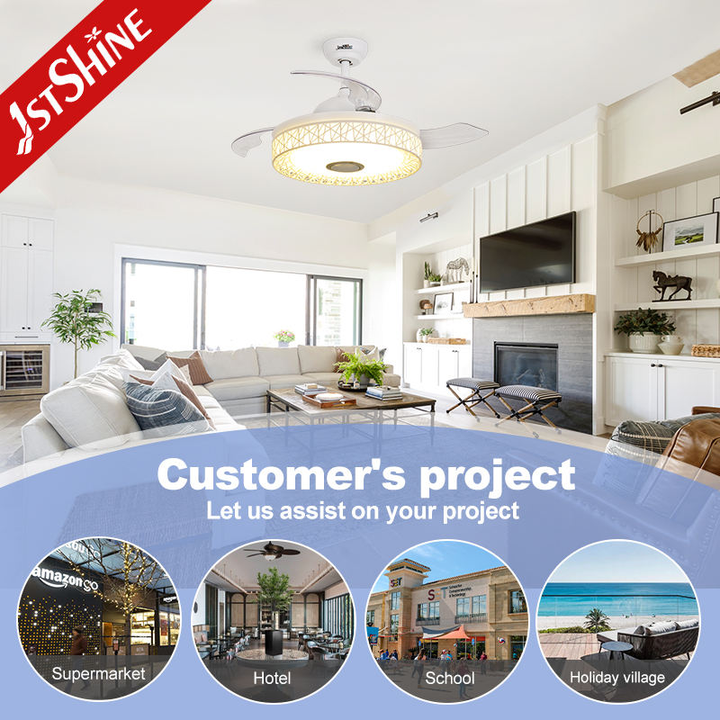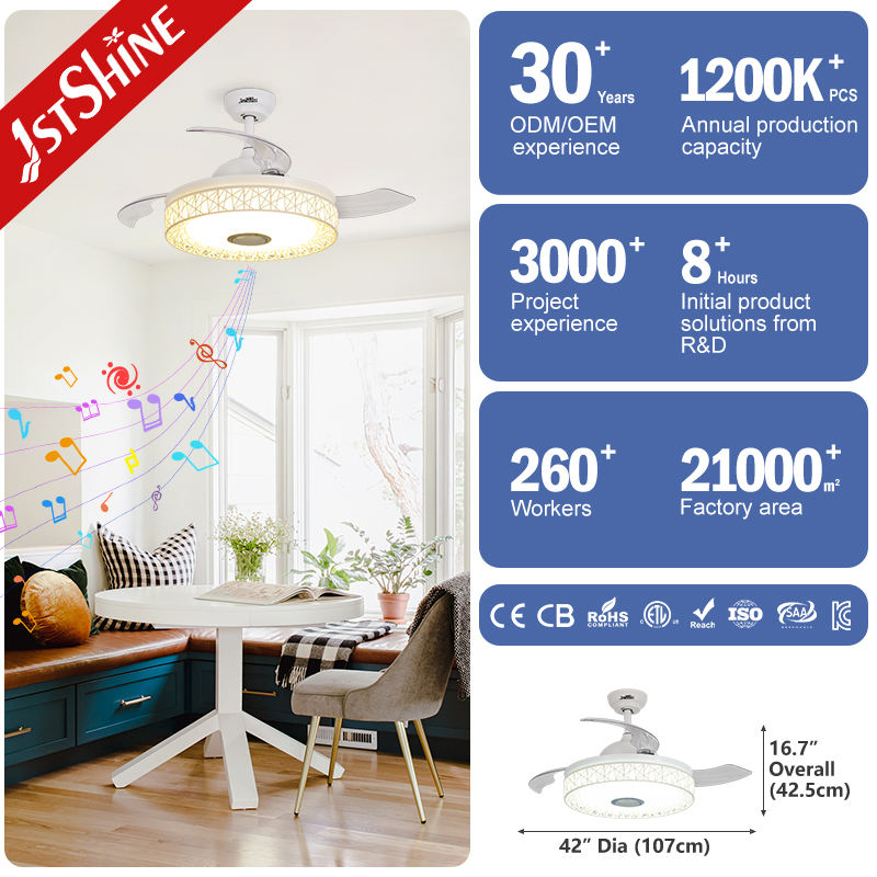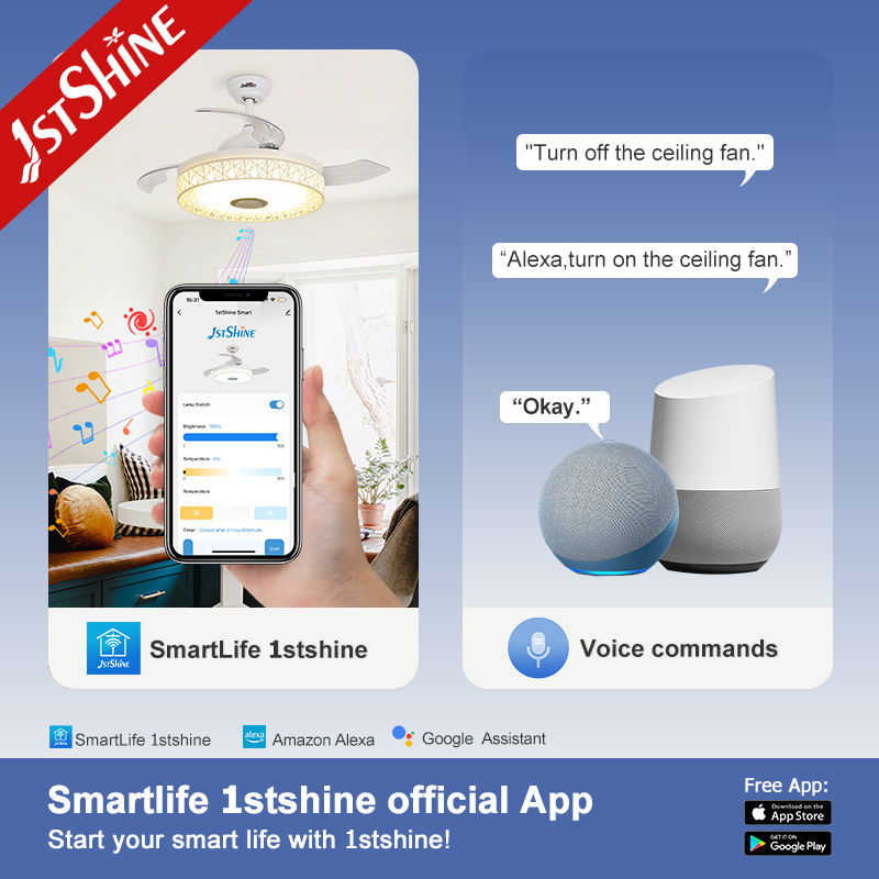1stshine Led Ventilador de techo de alta velocidad Eficiente RGB LED 3 colores de iluminación Ventilador de Techo Retráctil con control remoto