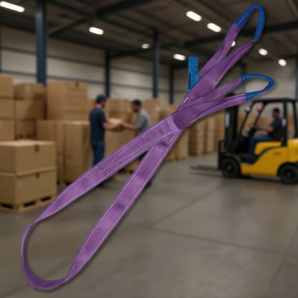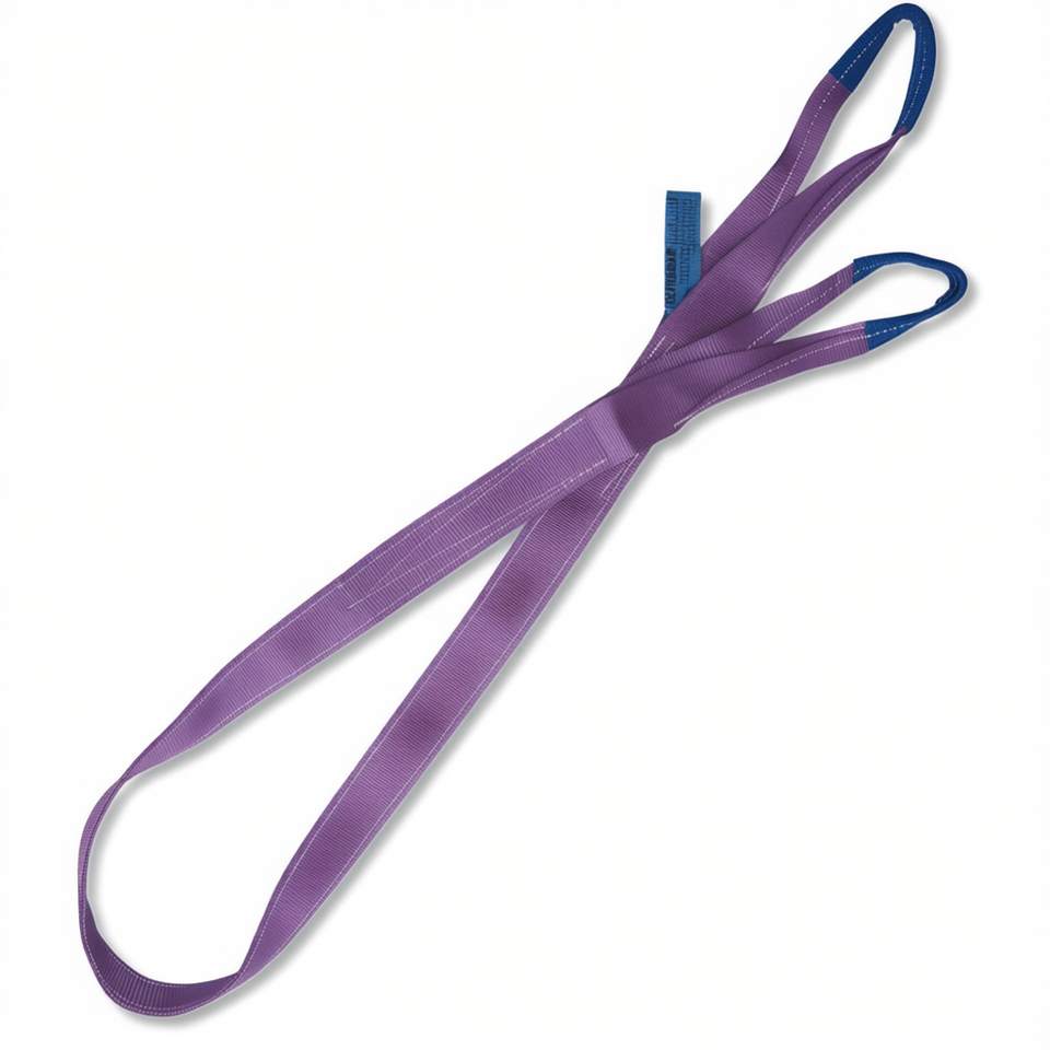 Eslinga de elevación de poliéster (PES) morado de alta tenacidad de 1 tonelada, cincha plana de doble capa con bucles reforzados para cuerdas de embalaje