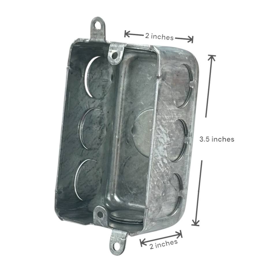 Caja de Conexiones Rectangular de Acero Galvanizado de 2.0 mm de Espesor y 3/4 de Pulgada con Siete Orificios, Orejas Externas, Anticorrosión y Resistente al Fuego