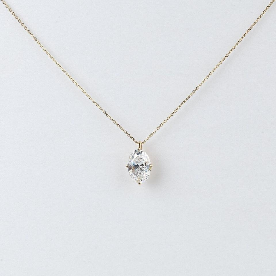 Colgante de Diamante Cultivado en Laboratorio de Corte Ovalado de 2.00 Quilates, Cadena de Eslabones, Platino 950, Oro Amarillo de 14K y 18K, Joyería de Compromiso y Boda