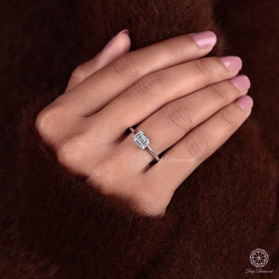 Keyword:East west emerald cut Lab Grown Diamond Enagagement ring