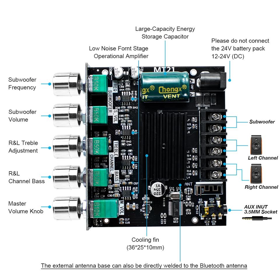 Placa Amplificadora de Audio Bluetooth de 2.1 Canales, 50W x 2 + 100W, con Control de Agudos y Graves para Altavoces DIY y Cine en Casa