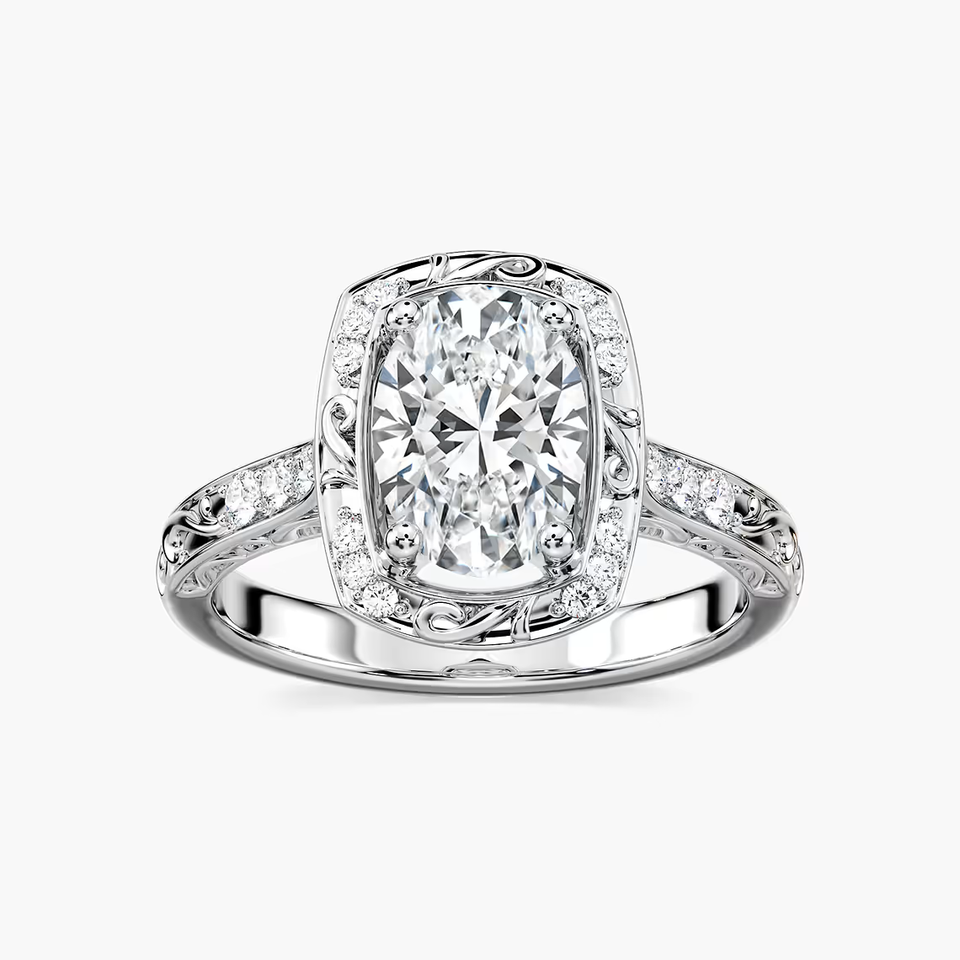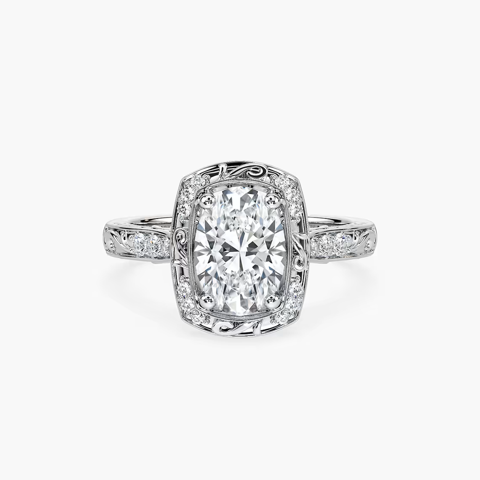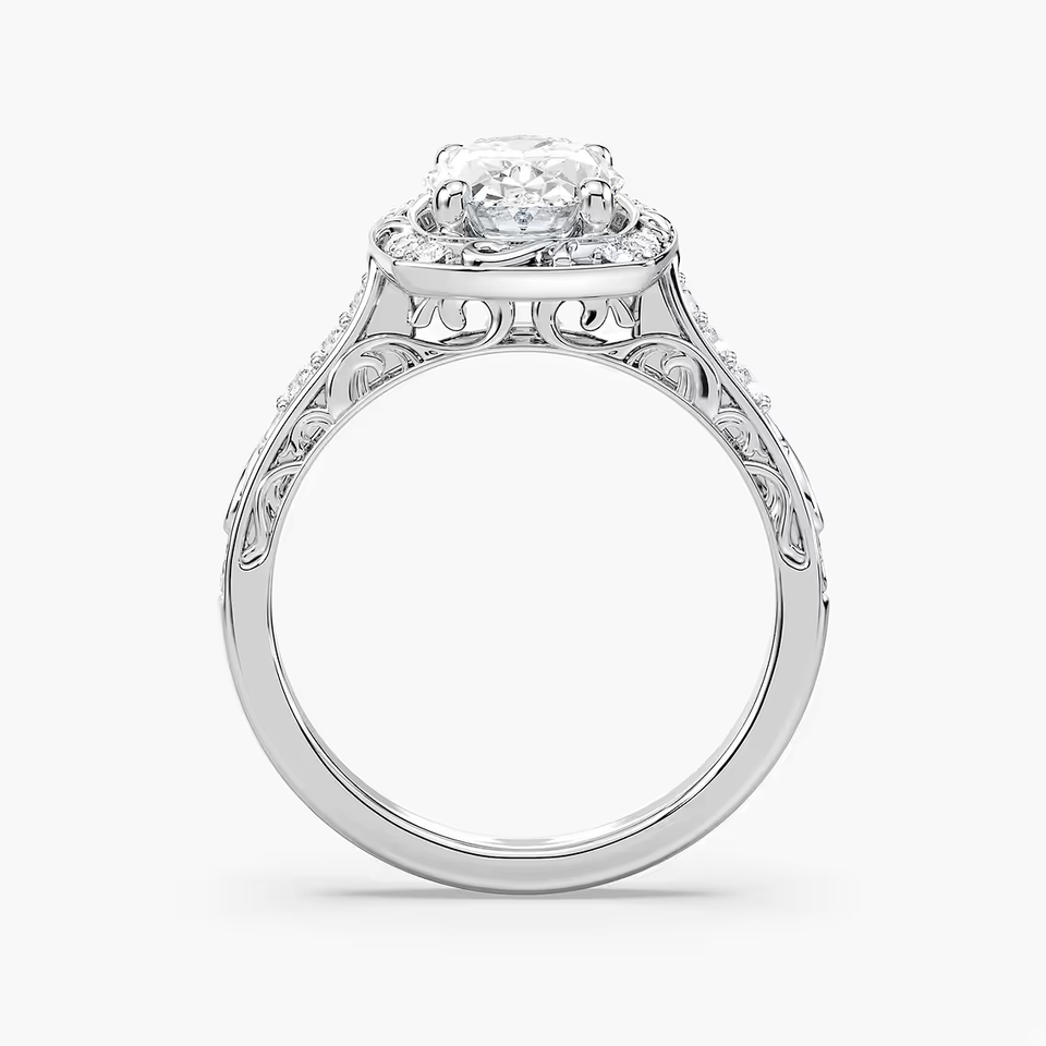 Anillo de Compromiso Vintage con Diamante Cultivado en Laboratorio de Corte Ovalado de 2.10 CTW, Diseño Halo Milgrain, Certificado IGI, Oro Sólido de 14K, Anillo de Novia