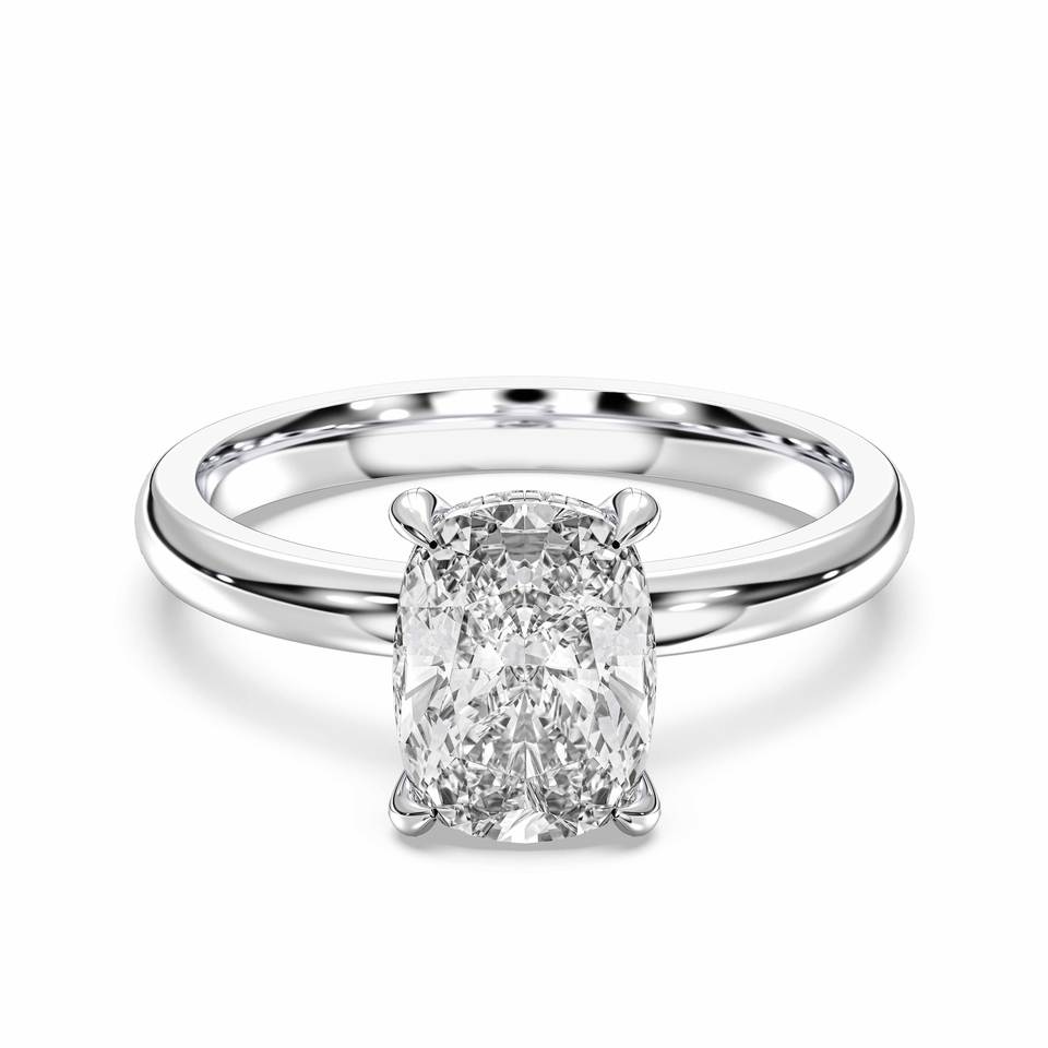 Anillo de compromiso de diamante cultivado en laboratorio de 2,16 quilates para mujer, cojín y corte redondo en platino, Juego de puntas de solitario