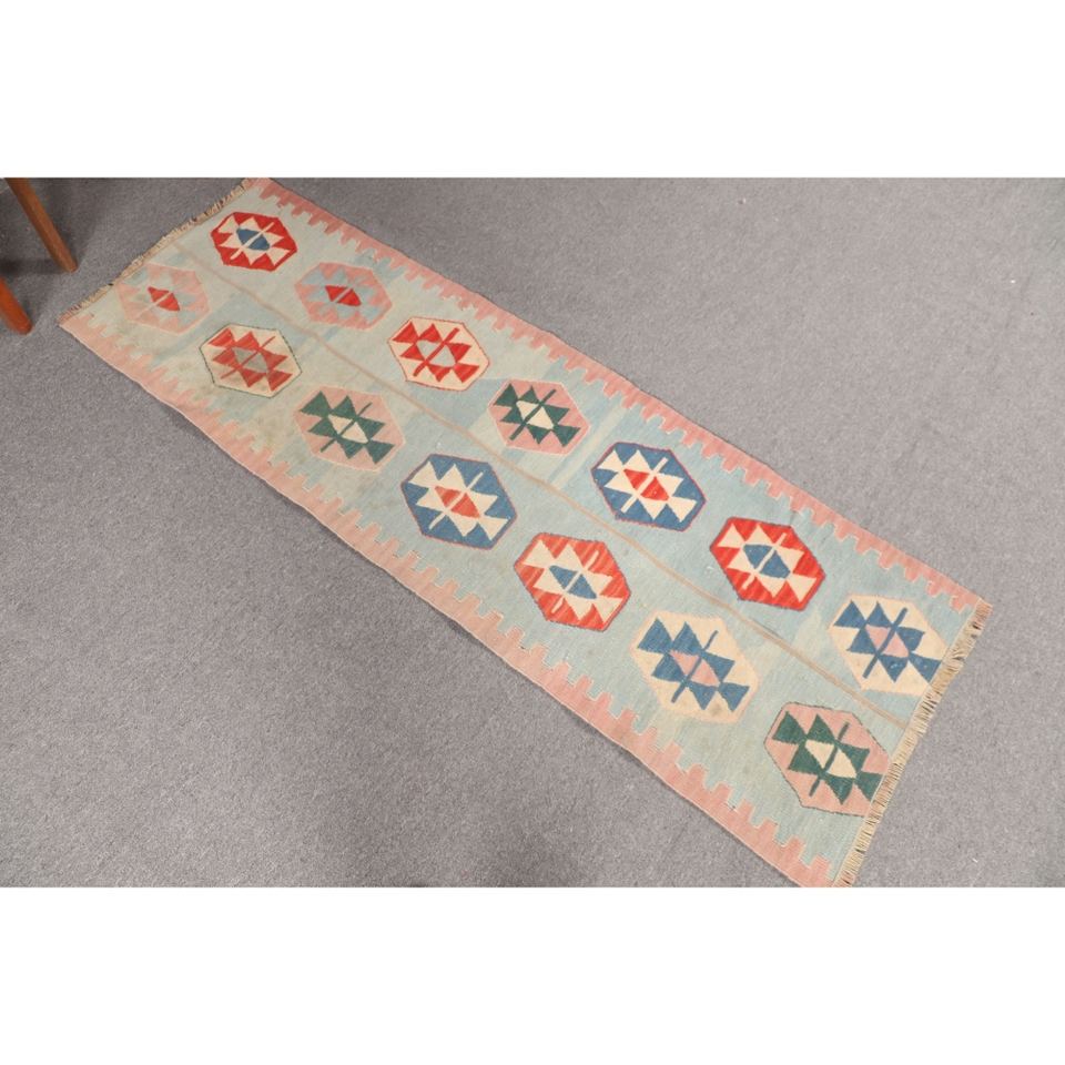 Alfombra Turca Vintage de 2.1x6 pies, Alfombra de Pasillo, Alfombra de Lana Azul Kilim