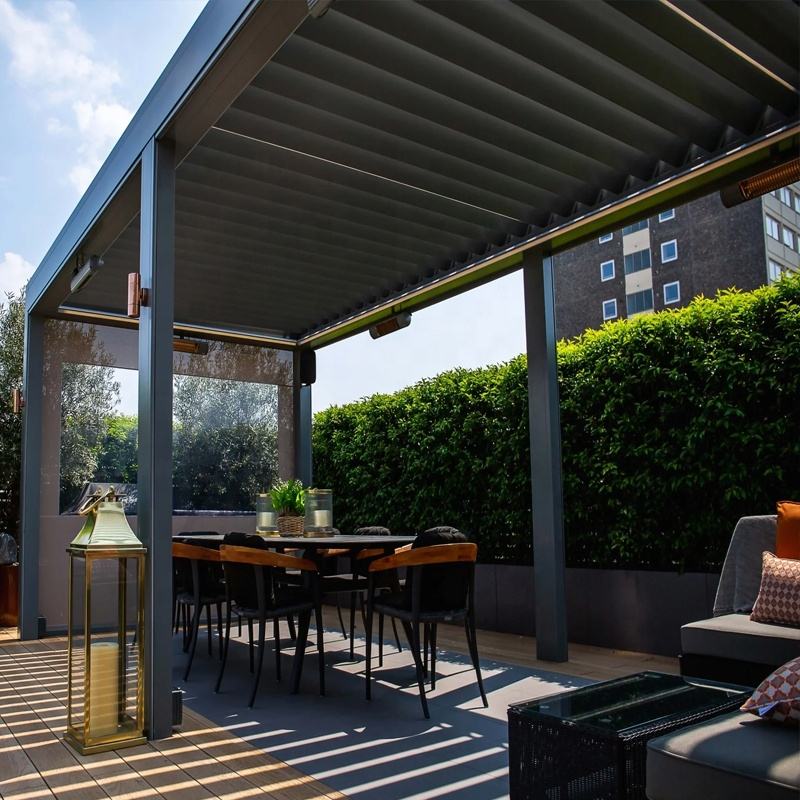 2-20% de descuento 10x12 pérgola cobertizo para vivir al aire libre creaciones de patio trasero Gazebo cubierta de patio con persianas casas de verano para jardines pequeños