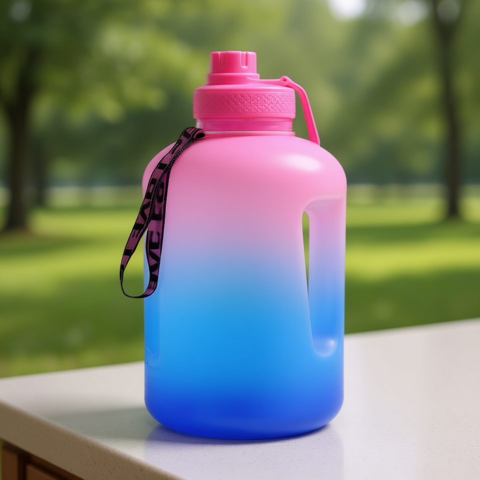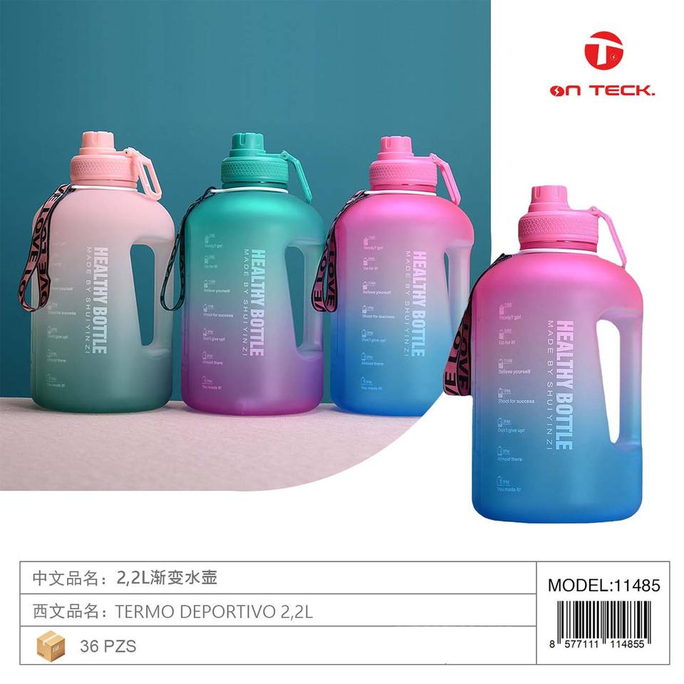 Botella de Agua Deportiva On Teck Sa De Cv con Diseño Degradado de 2.2L, Diseño Duradero con Correa para Gimnasio y Uso Doméstico