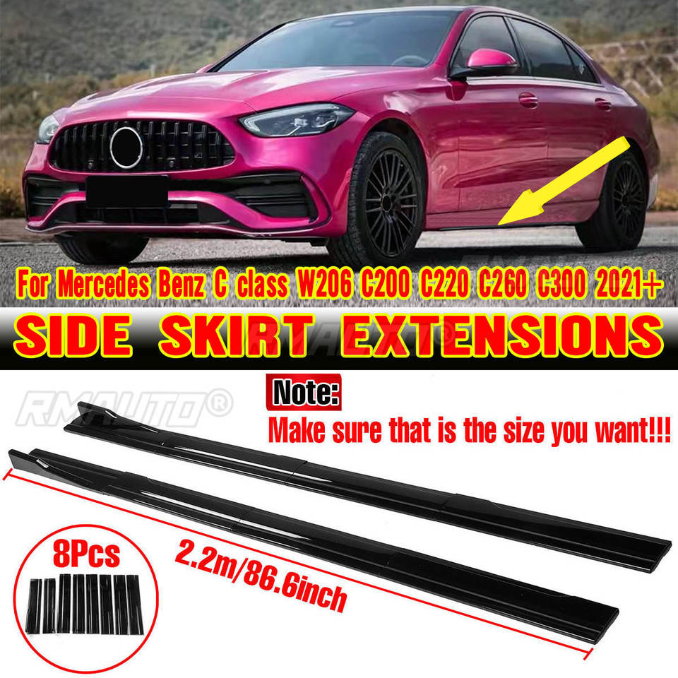 Extensiones de faldones laterales de 2.2m, Splitters, Difusor y Alerones para Mercedes Benz Clase C W206 C200 C220 C260 C300 2021+