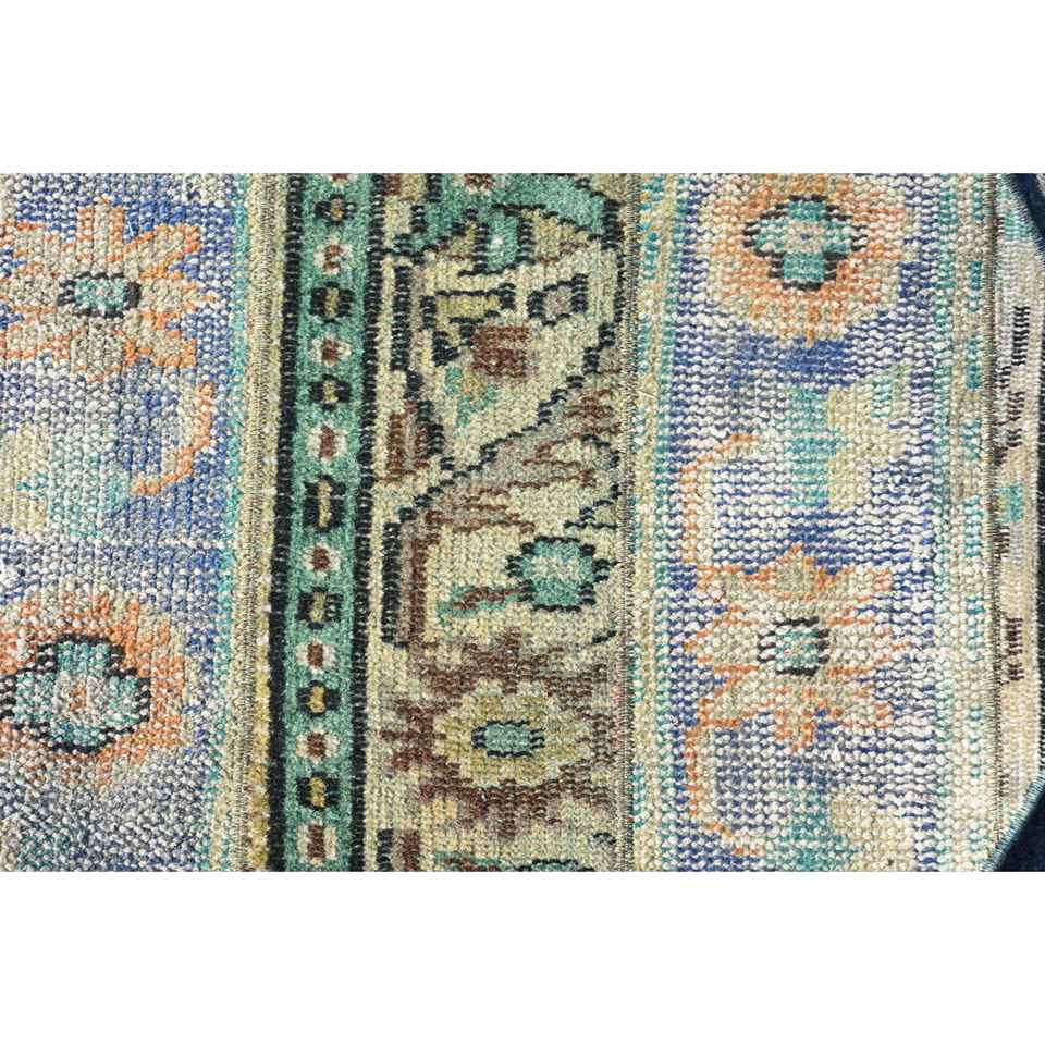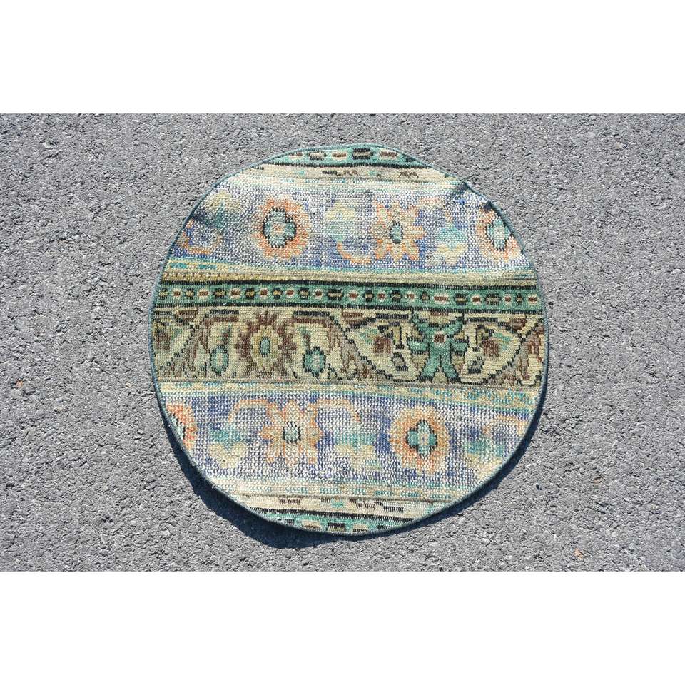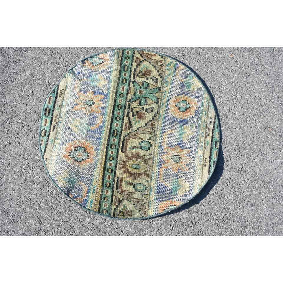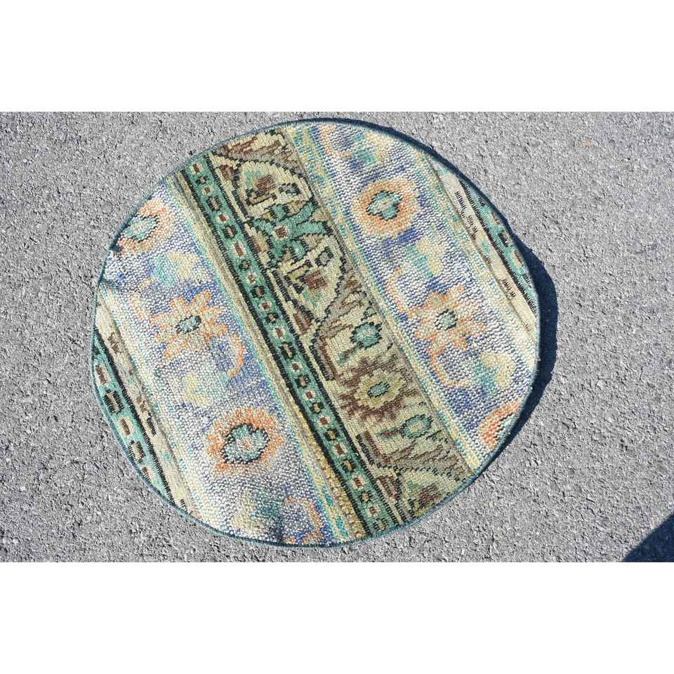 Alfombra Vintage de 2.2x2.2 pies, Alfombra Turca, Alfombra de Lana con Rayas Azules