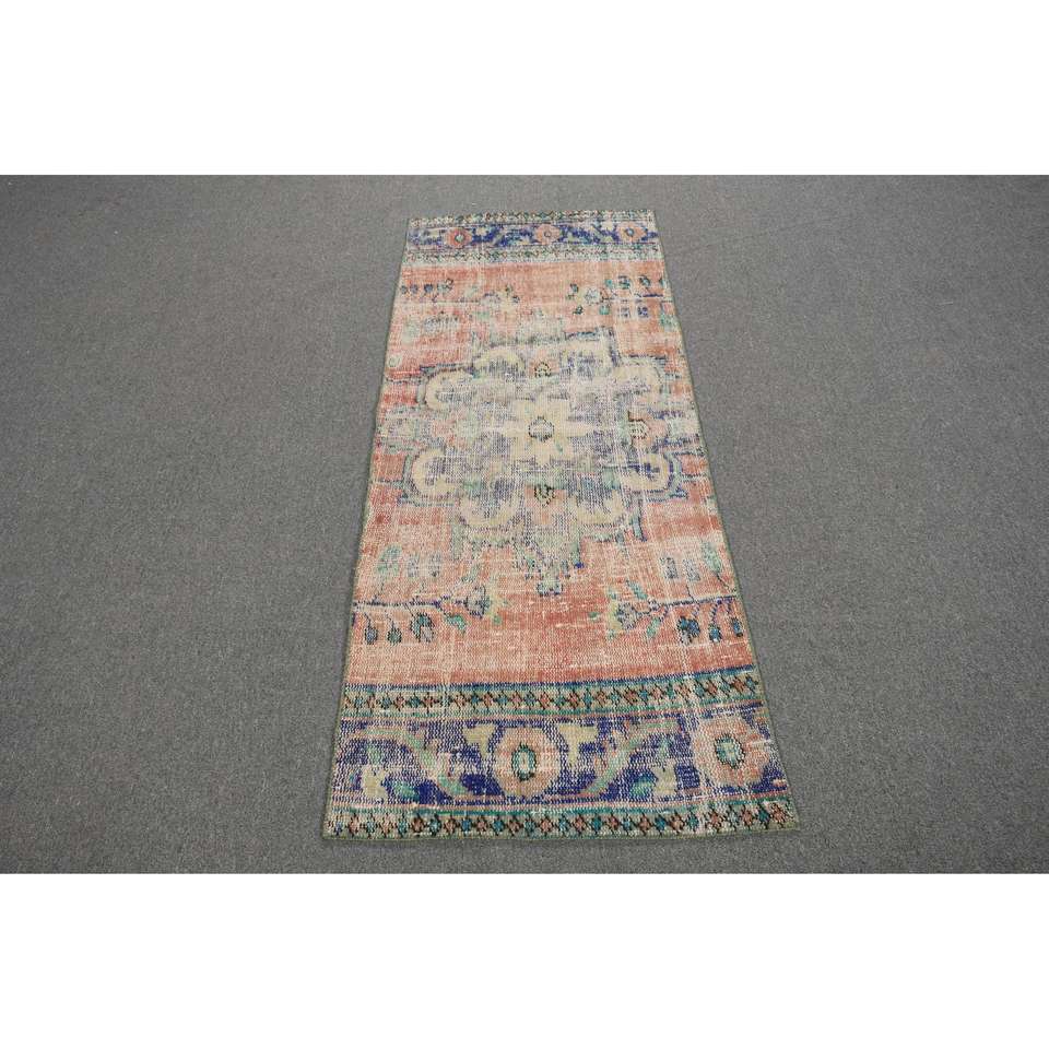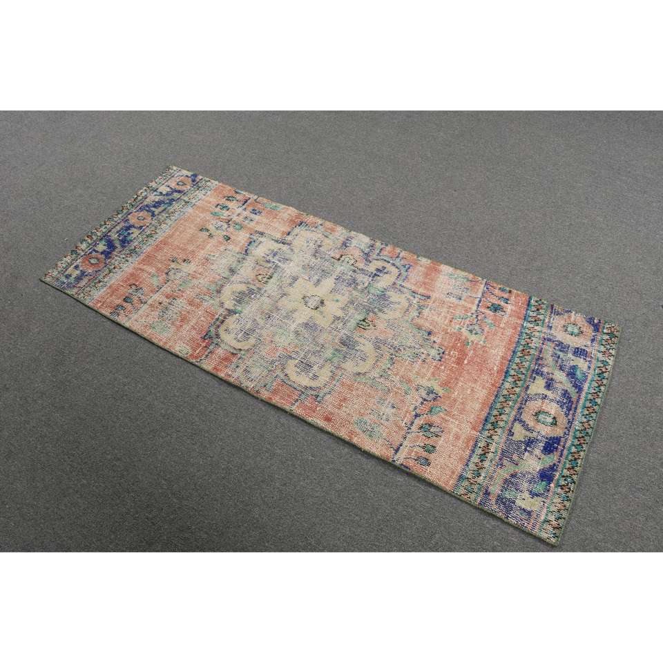 Alfombra Vintage de 2.2x5.4 pies, Alfombra Turca de Lana con Diseño Floral Azul