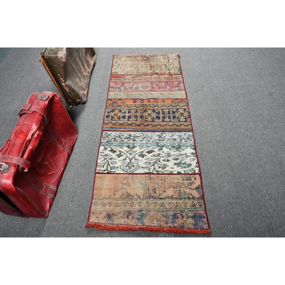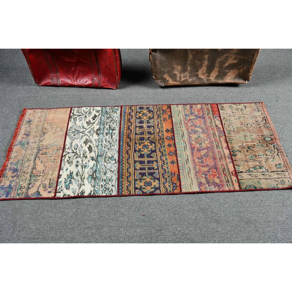 Alfombra vintage de 2.2x5.5 pies, alfombra turca tipo runner, alfombra de lana azul con lunares