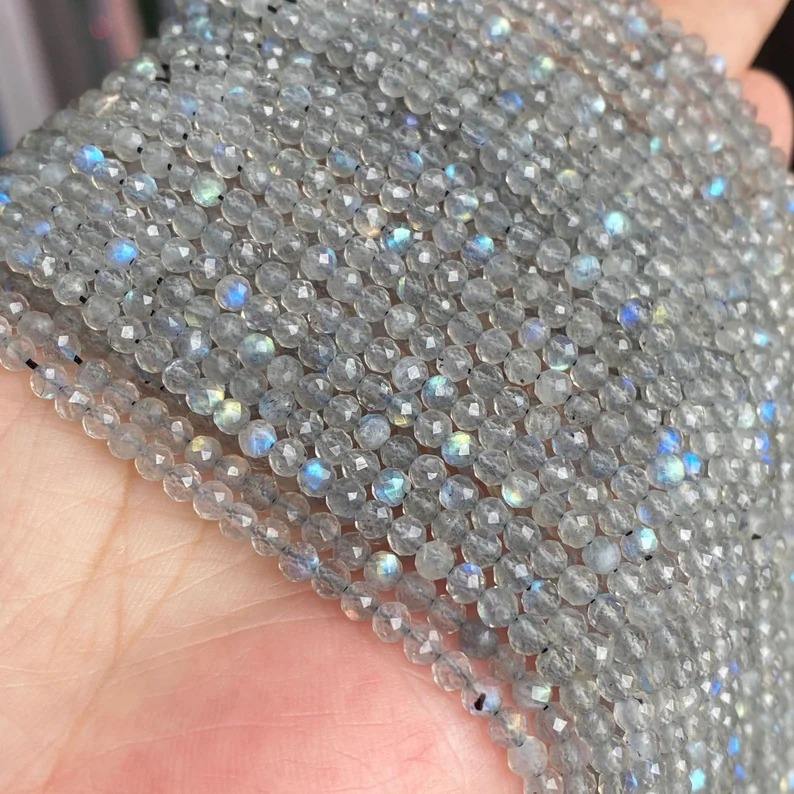 Cuentas de Piedra Preciosa de Labradorita Natural Genuina de 2/3/4mm, Facetadas en Negro, Certificadas por Terceros, para Fabricación de Joyería, 15.5''