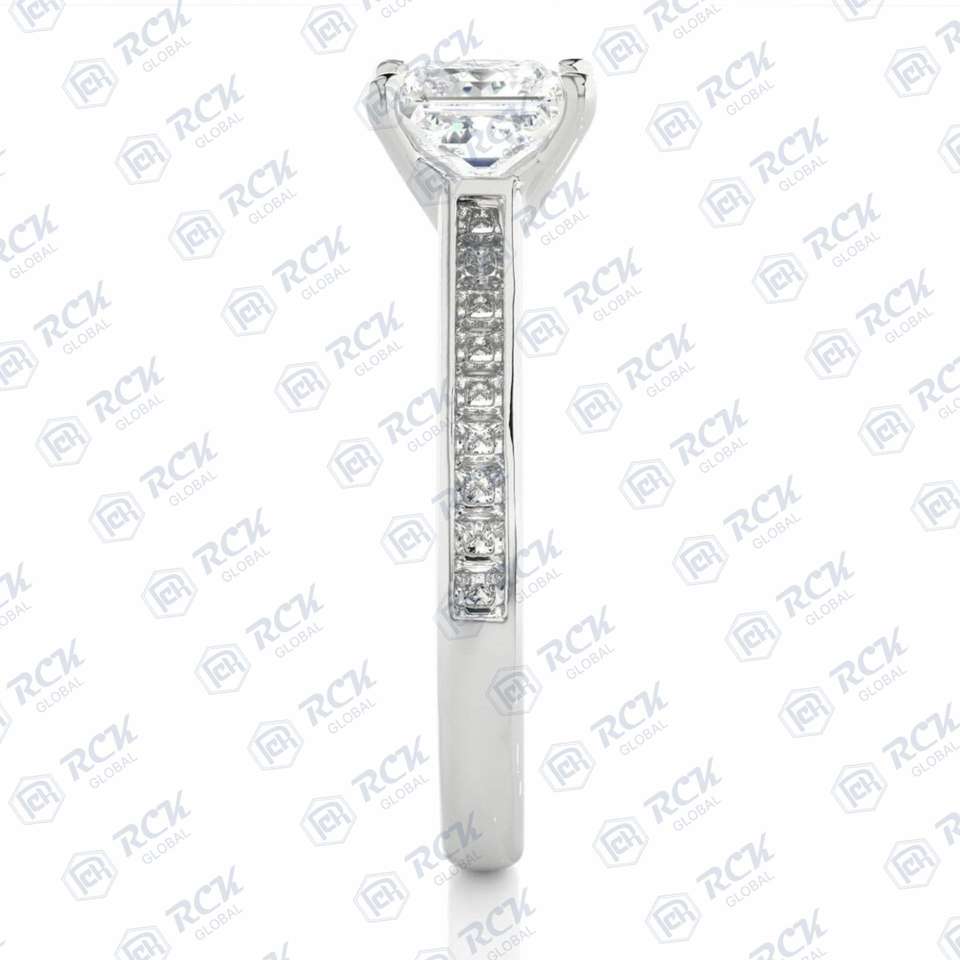 Anillo de moissanita solitario de corte princesa TCW 2,30 para mujer, anillo de amor de banda de regalo de aniversario y cumpleaños acentuado