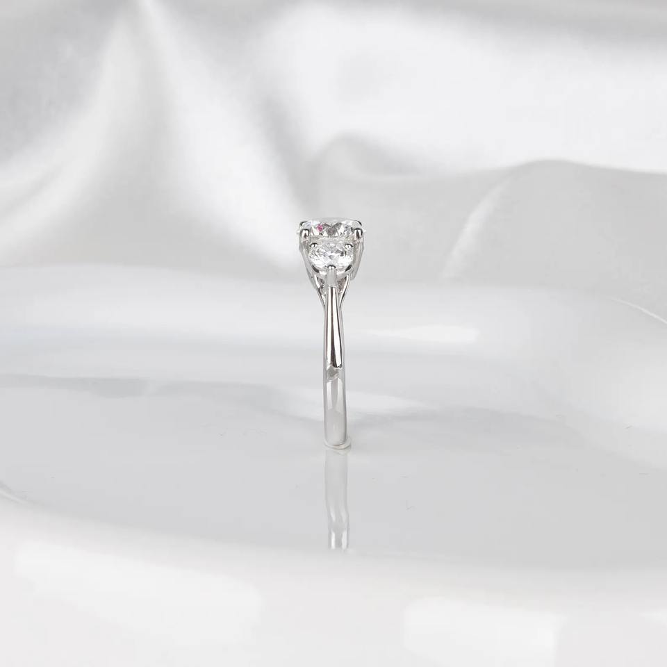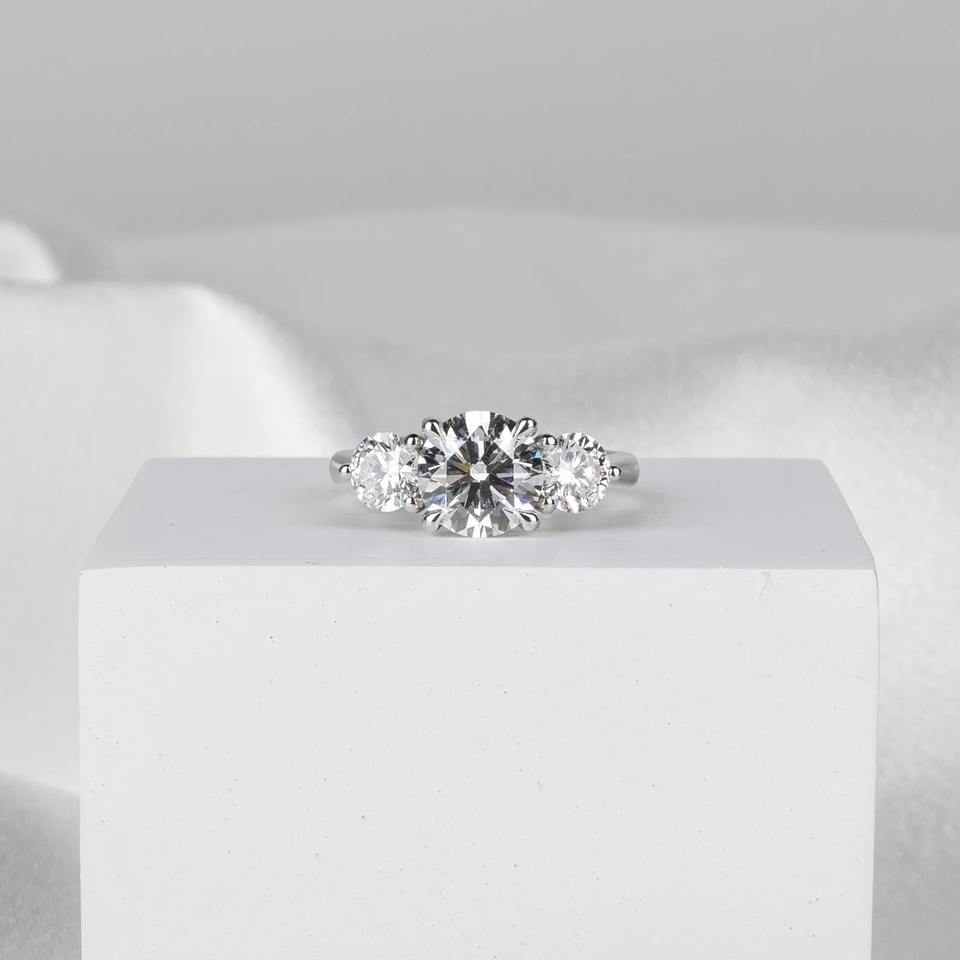 Anillo de Diamante Cultivado en Laboratorio de Corte Redondo de 2.3CT, Tres Piedras con Engaste Tulipán, Catedral, Oro Blanco de 14K, Anillo de Compromiso y Boda