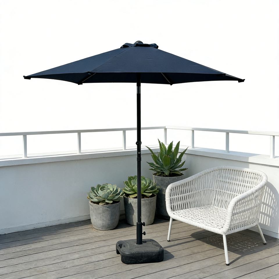 Sombrilla de Patio Plegable Moderna de 2.3m, Impermeable, Color Azul Marino, con Manivela, Estructura de Hierro, 6 Varillas, Resistente a los Rayos UV, para Jardín, Hotel