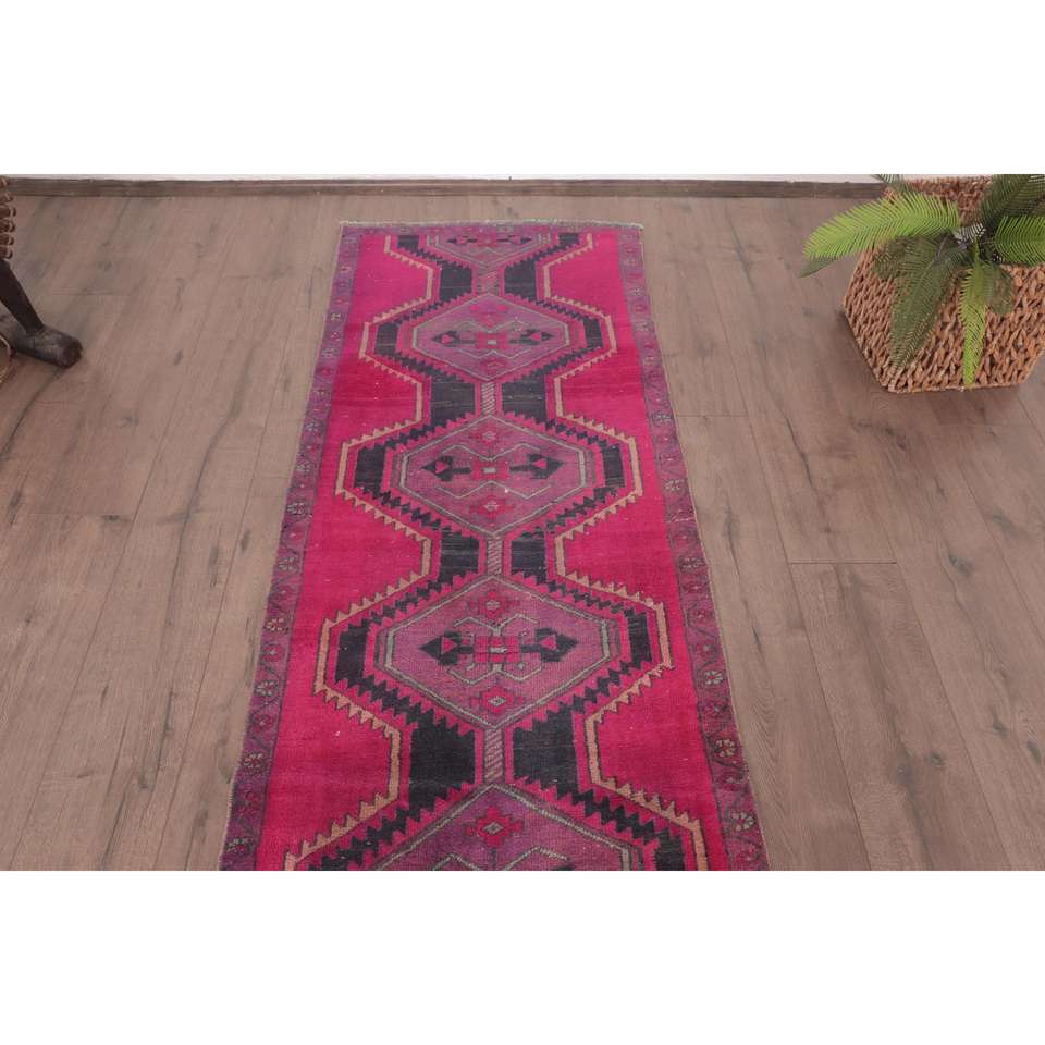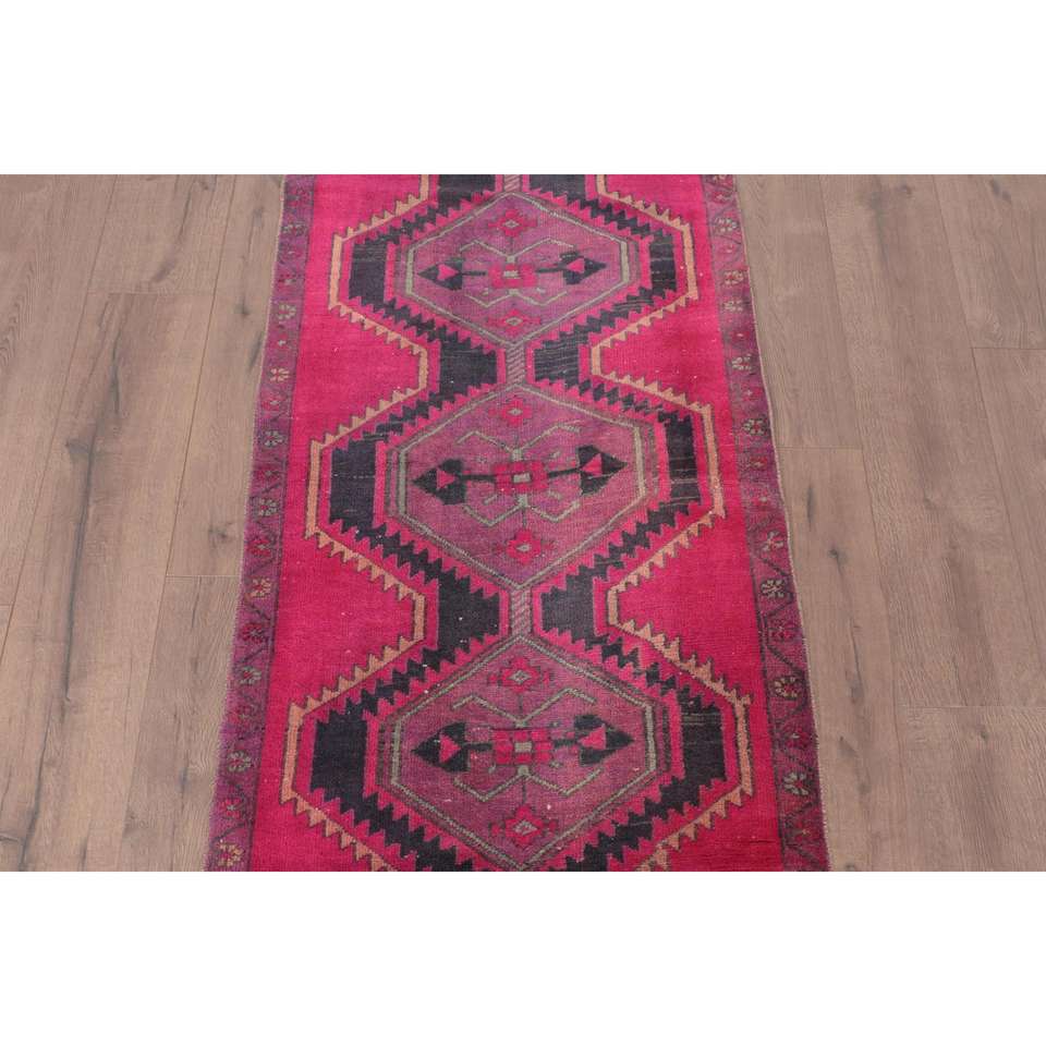 Alfombra Turca de 2.3x11.8 pies, Alfombra Vintage Tipo Runner, Alfombra de Lana con Diseño de Camuflaje Rojo y Negro