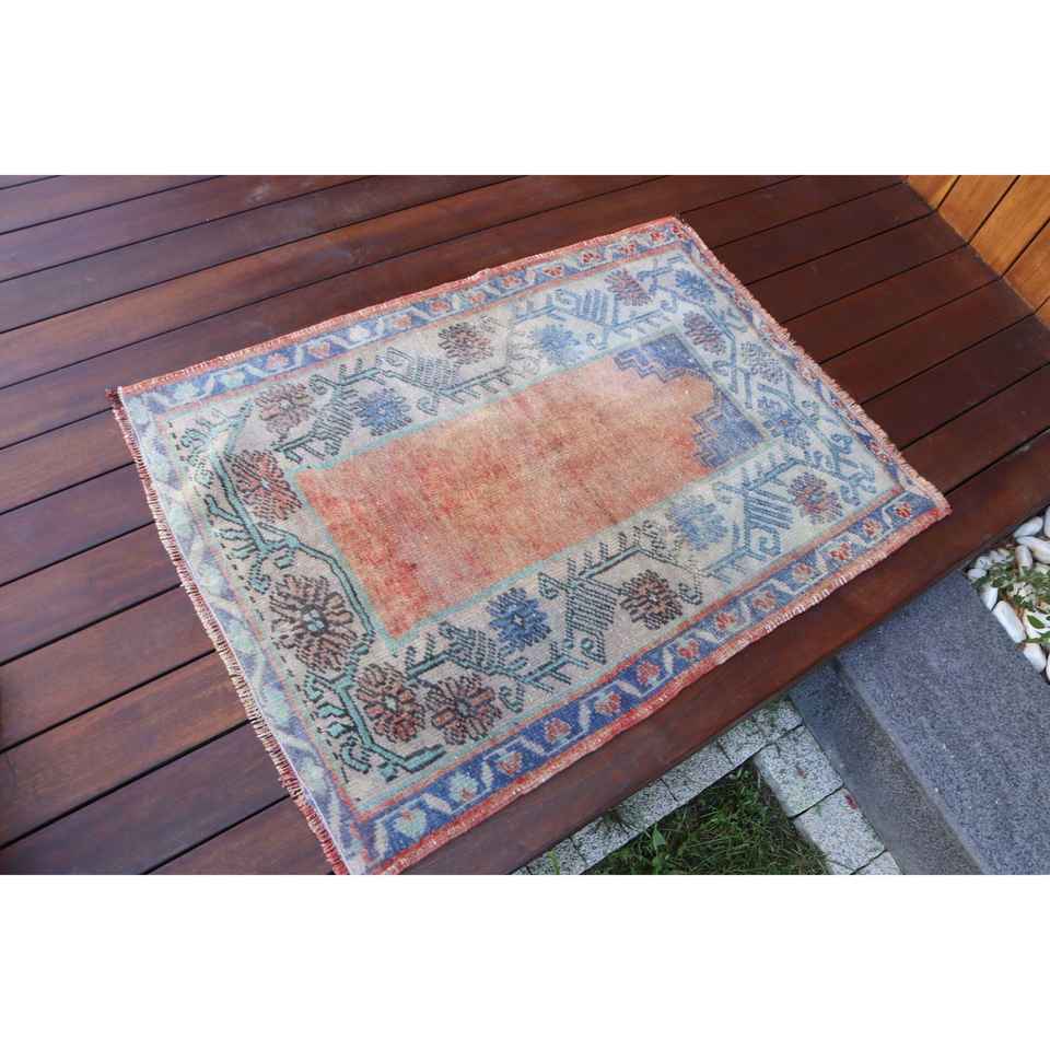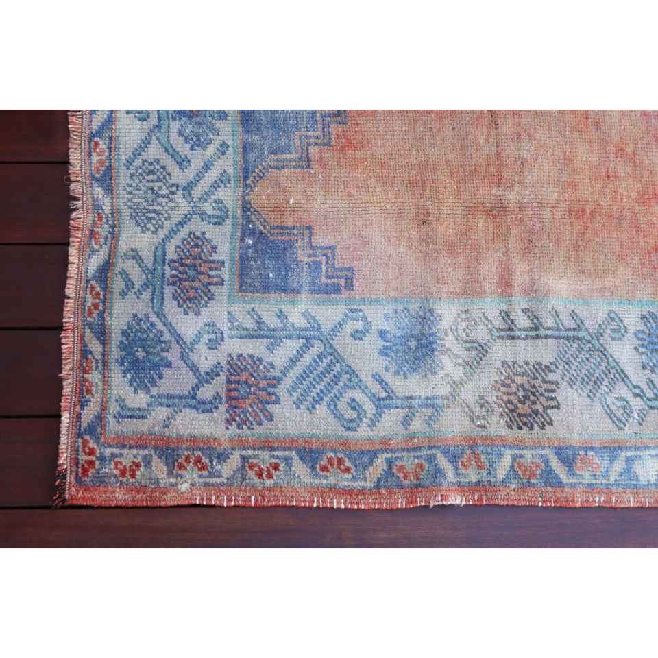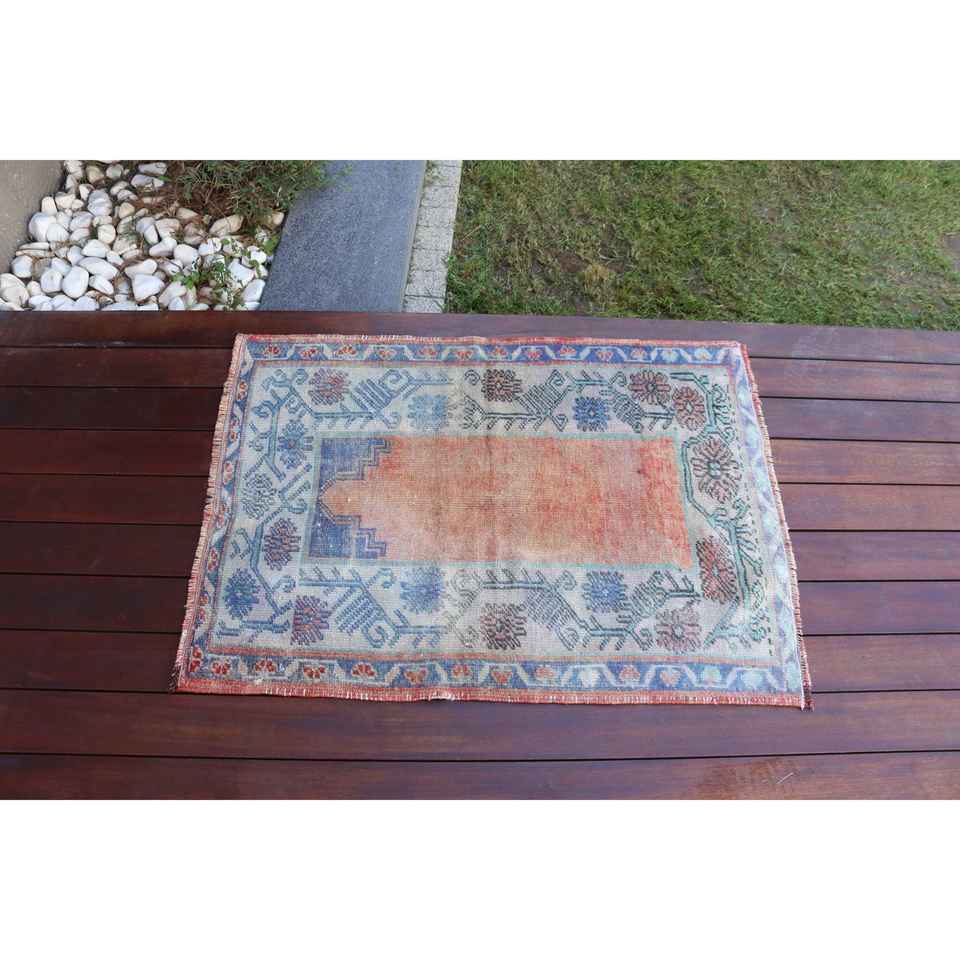 Alfombra Vintage de 2.3x3.2 pies, Alfombra con Borde Azul, Alfombra de Lana