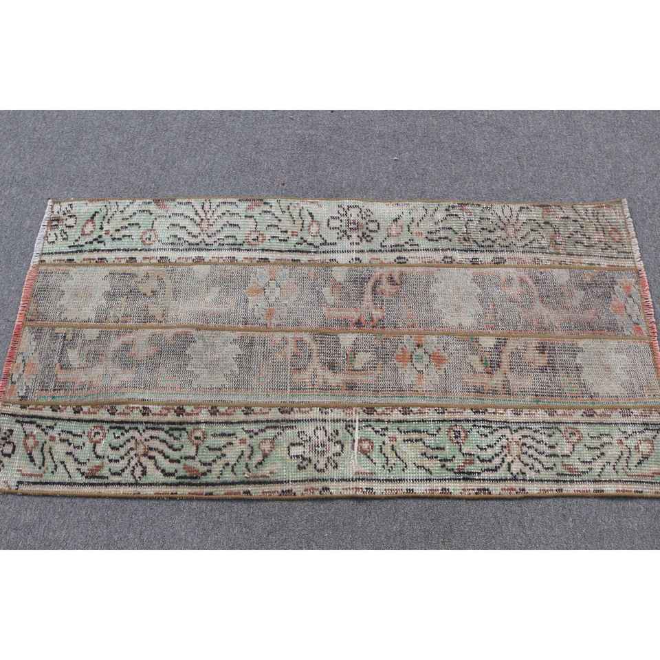 Alfombra Turca de 2.3x4.4 pies, Alfombra Vintage, Alfombra Oriental Verde de Lana