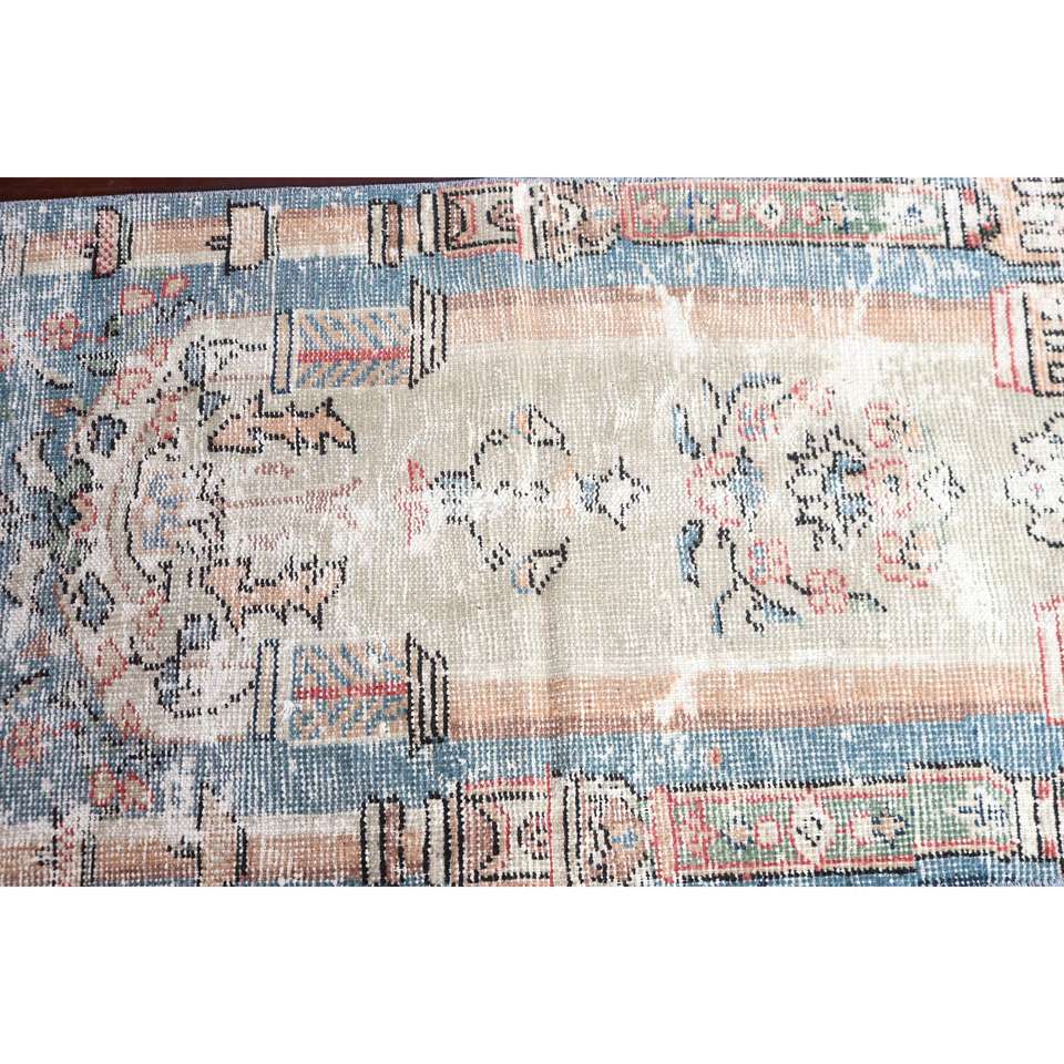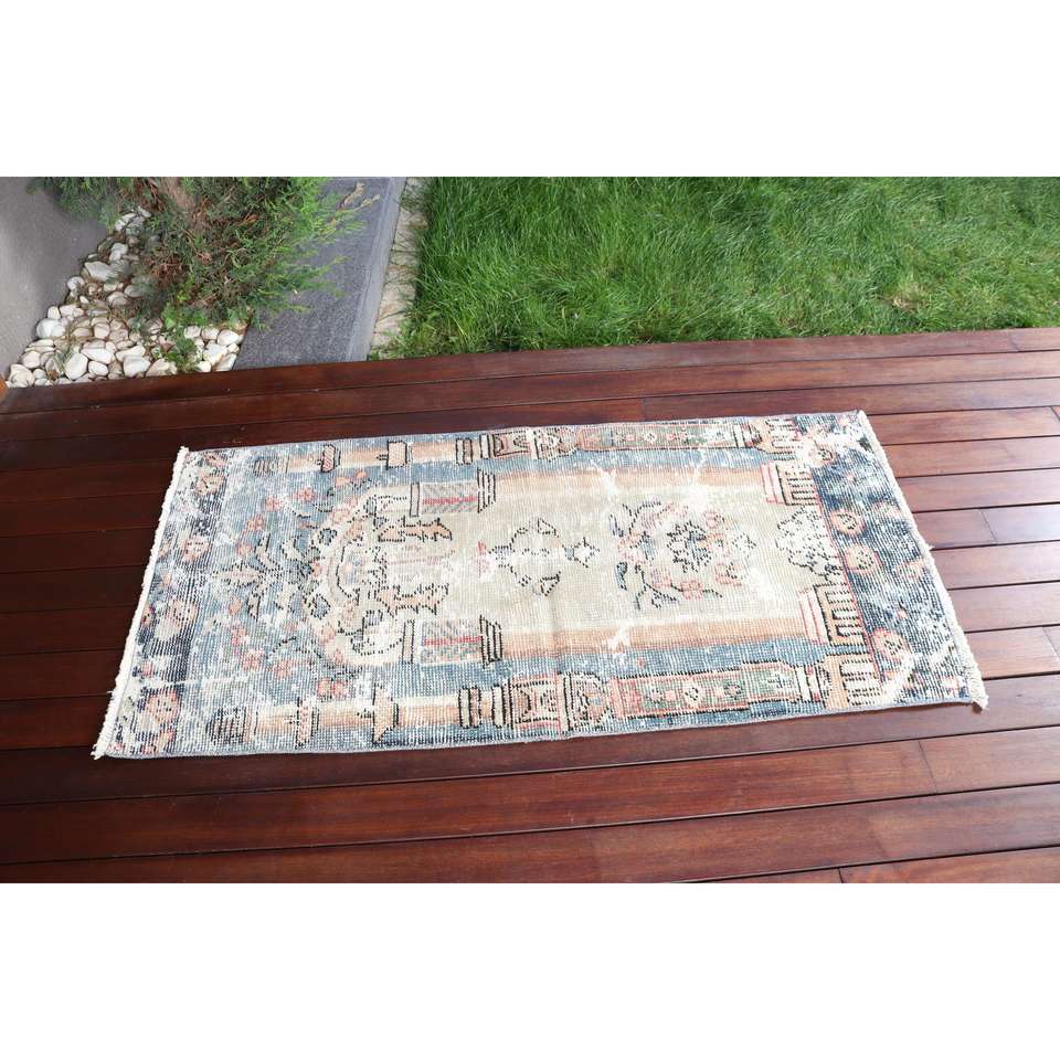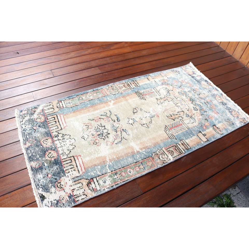 Alfombra de 2.3x4.6 pies, Alfombra Turca Vintage, Alfombra Oriental de Lana Azul y Blanca