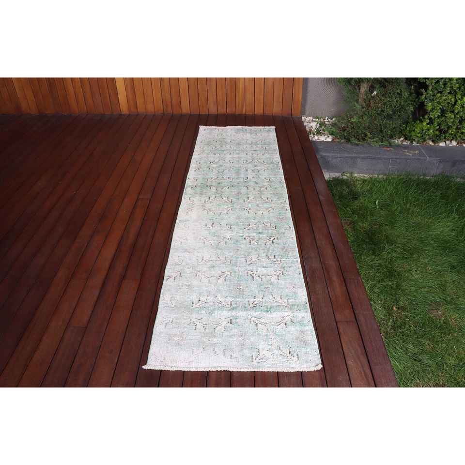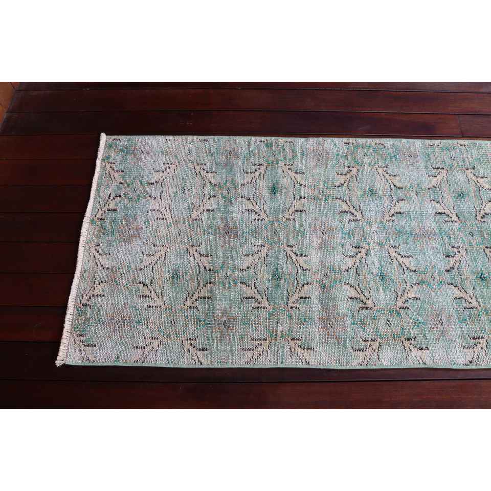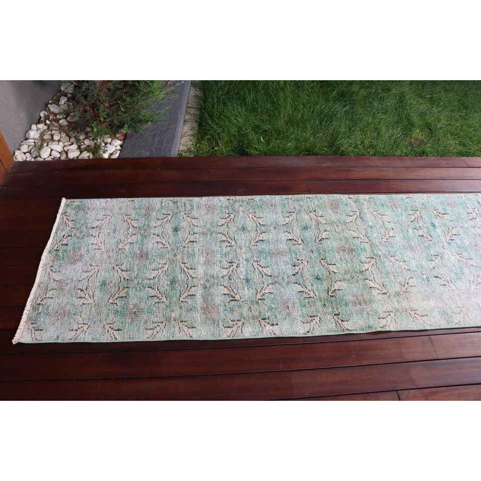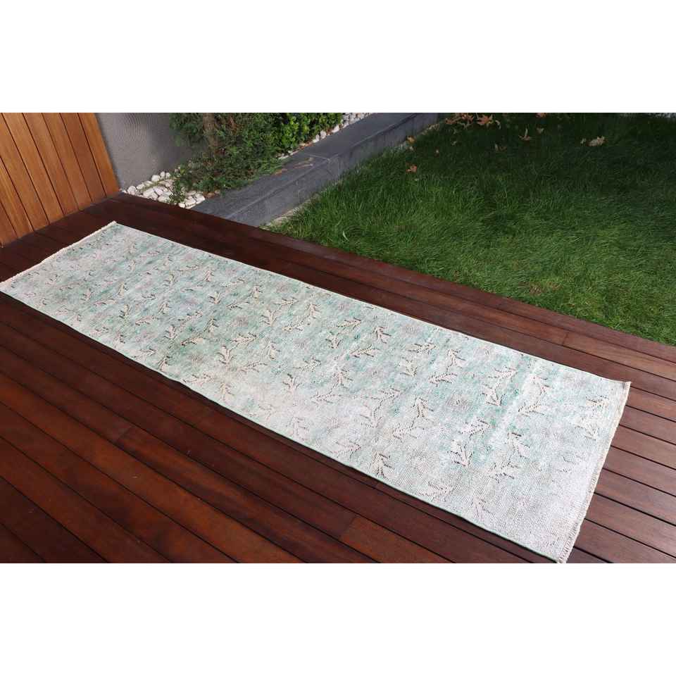 Alfombra Vintage de 2.3x8.3 pies, Alfombra Turca Azul con Diseño Floral de Lana