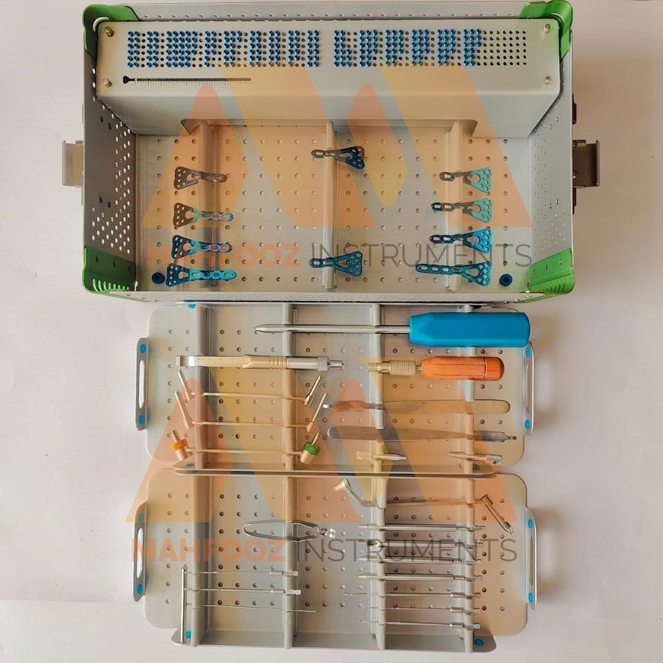 Placas y tornillos volares distales de ángulo variable de 2.4/2.7 mm y caja de instrumentos, 229 piezas