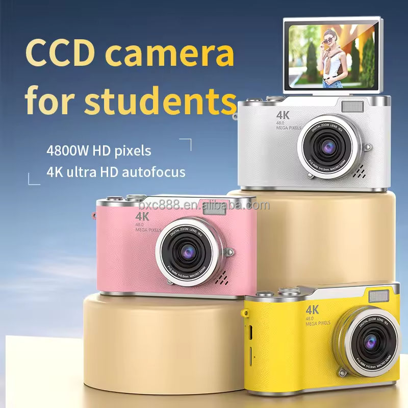 Cámara Digital con Pantalla Abatible de 2.4 Pulgadas, Vista Previa en Tiempo Real, 64MP, Gran Angular, Enfoque Automático, Belleza, Antivibración, para Principiantes