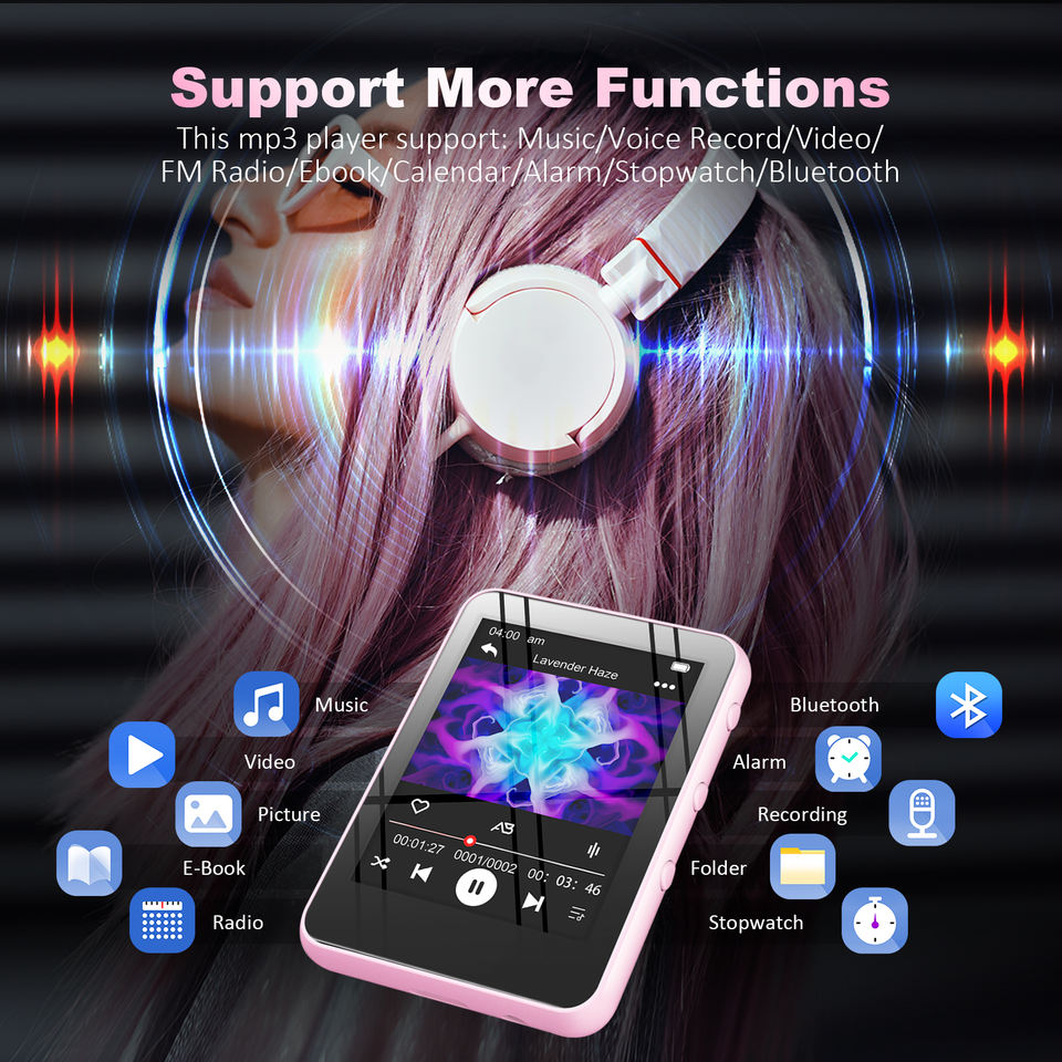 Reproductor MP3 con Pantalla Táctil TFT Completa de 2.4 Pulgadas, Color Rosa 5.3, Portátil, con Altavoz Integrado, Puerto Tipo-C, Video y Libro Electrónico, Fabricante OEM