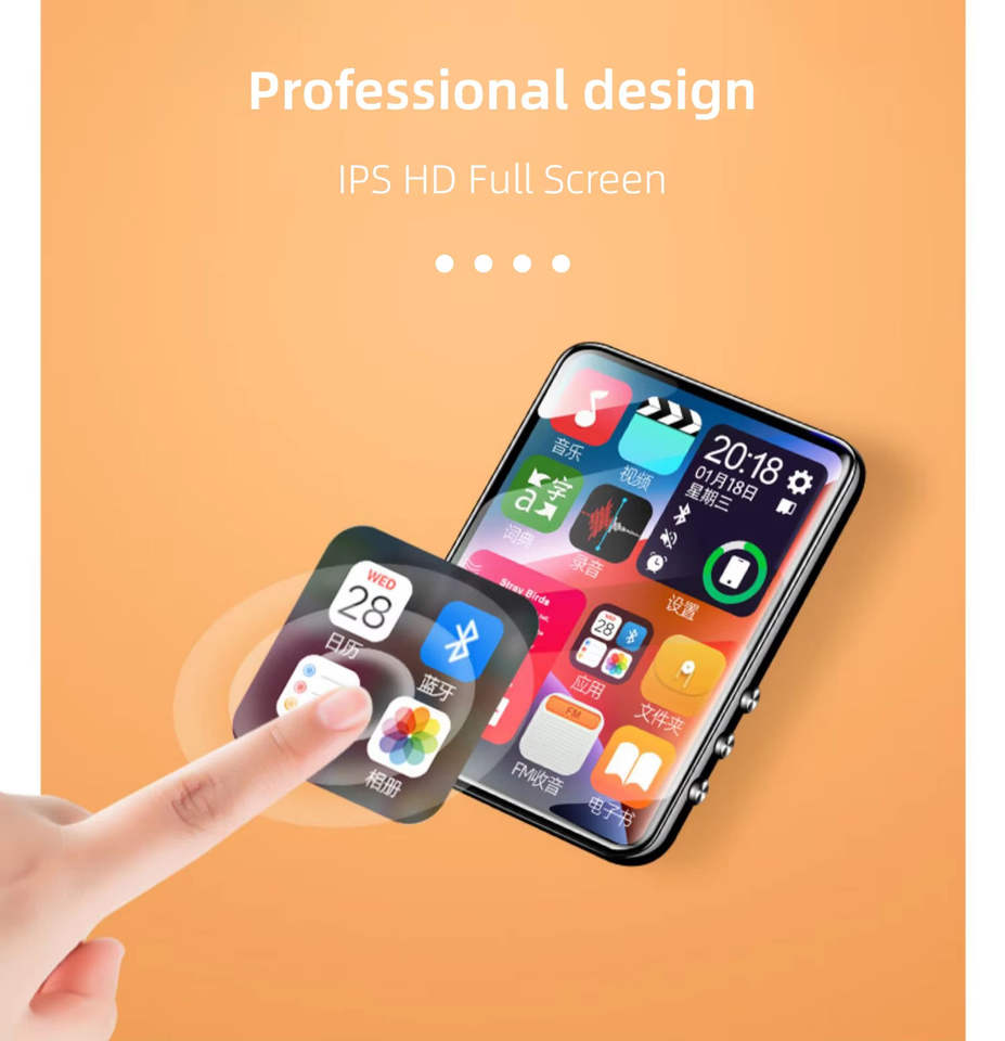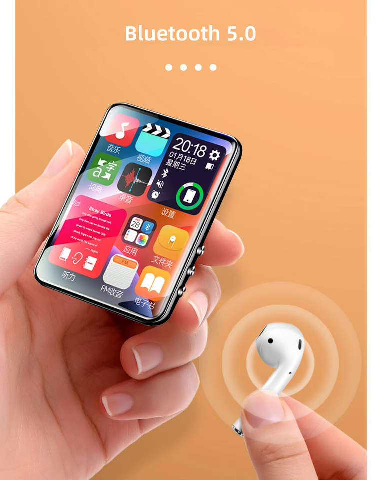 Reproductor MP3 MP4 con Pantalla Táctil Completa de 2.4 Pulgadas, Reproductor de Música HIFI con Bluetooth 5.2, Libro Electrónico, Diccionario, Grabadora, Dispositivo de Aprendizaje para Estudiantes