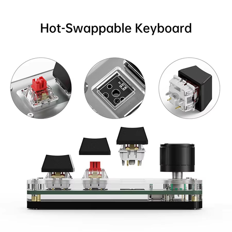 Mini Teclado Mecánico de 2.4G con 3 Teclas Personalizables, Perilla Macro, Teclas de Acceso Rápido para Copiar y Pegar, para Deportes Electrónicos, Conexión Hot-Swap