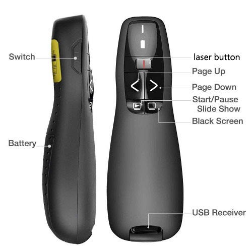 Puntero láser para presentador remoto inalámbrico USB RF de 2,4G, láser rojo para presentaciones efectivas de PowerPoint PPT