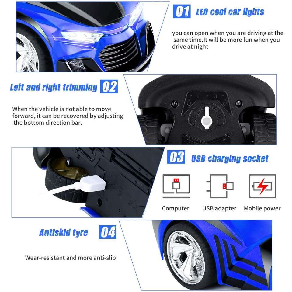 Juego de juguete de helicóptero y coche de carreras RC con comando de voz de 2,4G-Vehículos eléctricos de control remoto con baterías recargables USB