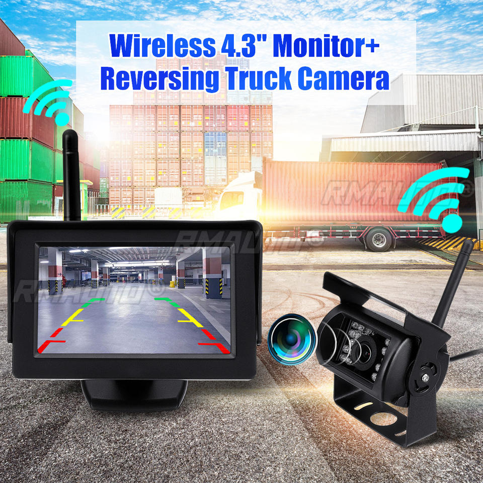 Sistema de Cámara de Visión Trasera Inalámbrica 2.4G para Automóvil, Cámara de Visión Nocturna con Monitor de 4.3 Pulgadas para Camiones y Remolques de 12-24V