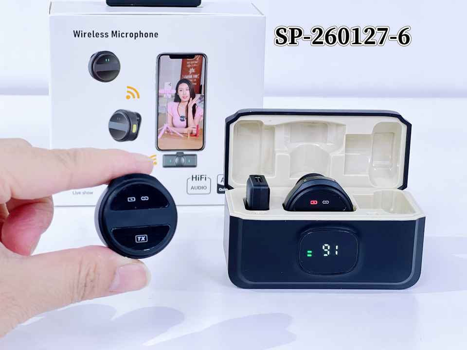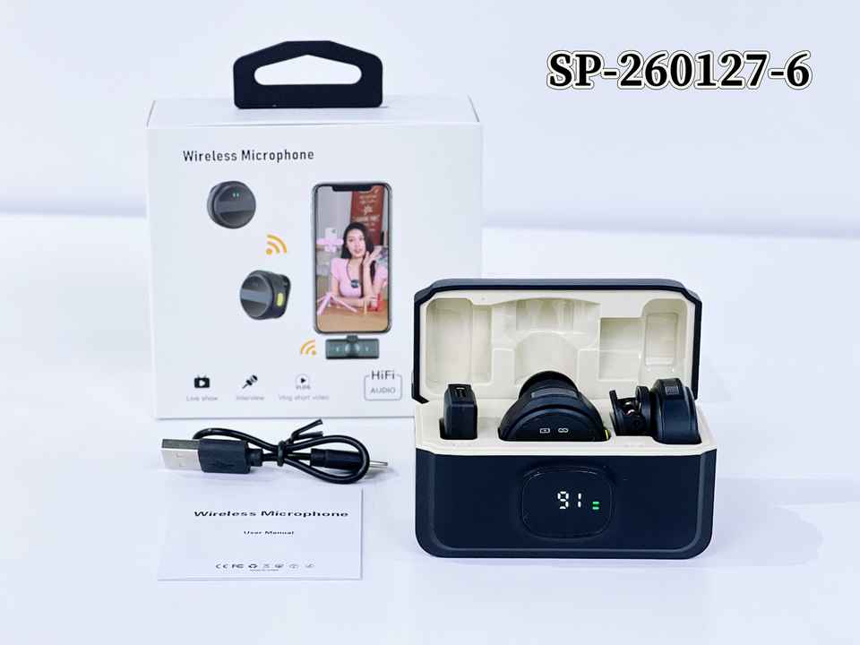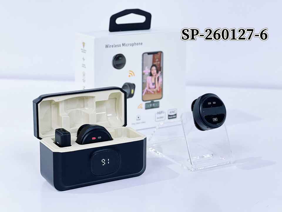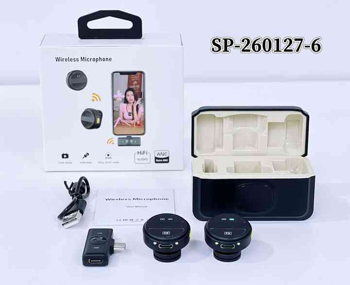 Micrófono Lavalier Inalámbrico 2.4G con Estuche de Carga, Reducción de Ruido ANC para iPhone y Android, Transmisión en Vivo, Vlog, Entrevistas