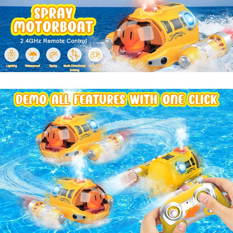 Función: juguete del gasboat del espray del RC:Demostración con un solo clic, spray, iluminación, rotación, conducción multidireccional