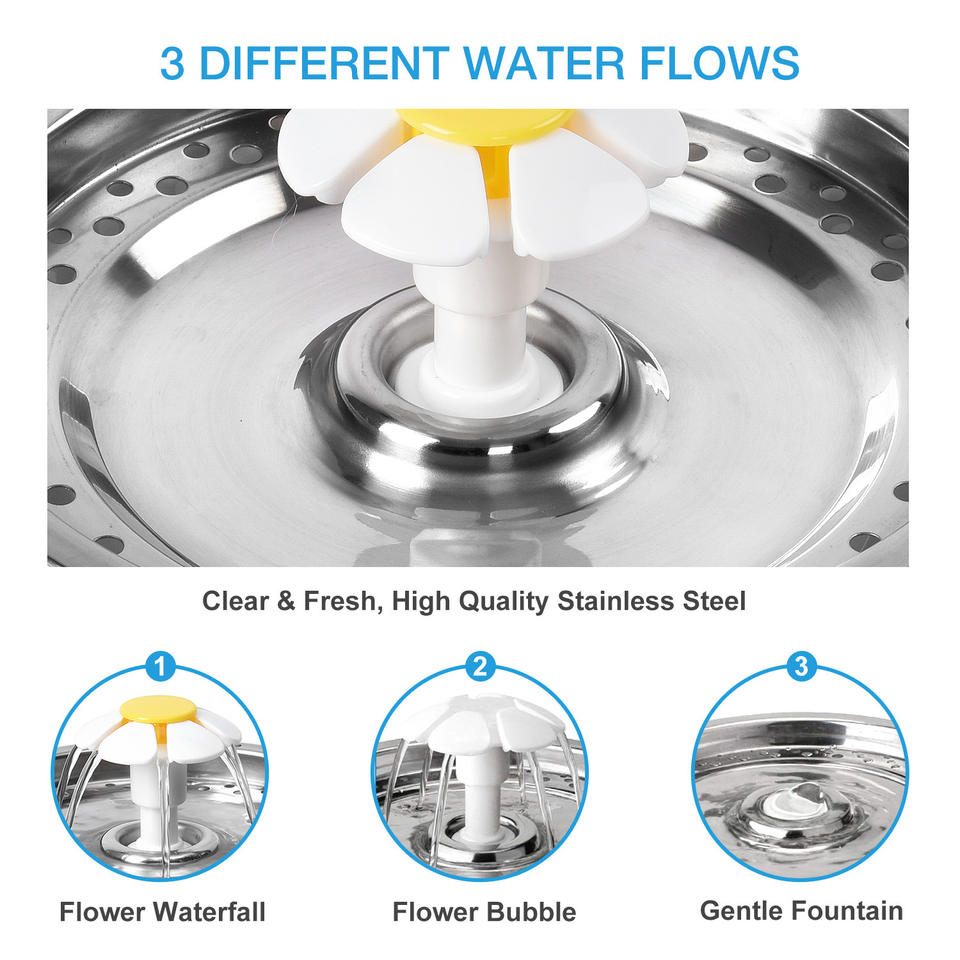 Fuente dispensadora alimentadora de agua LED eléctrica automática para mascotas gatos con forma de flor pequeña de 2,4 L