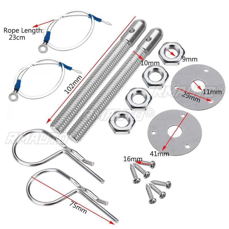 2/4 sets Kit de Bloqueo Universal de Acero Inoxidable Estilo Racing para Capó de Coche