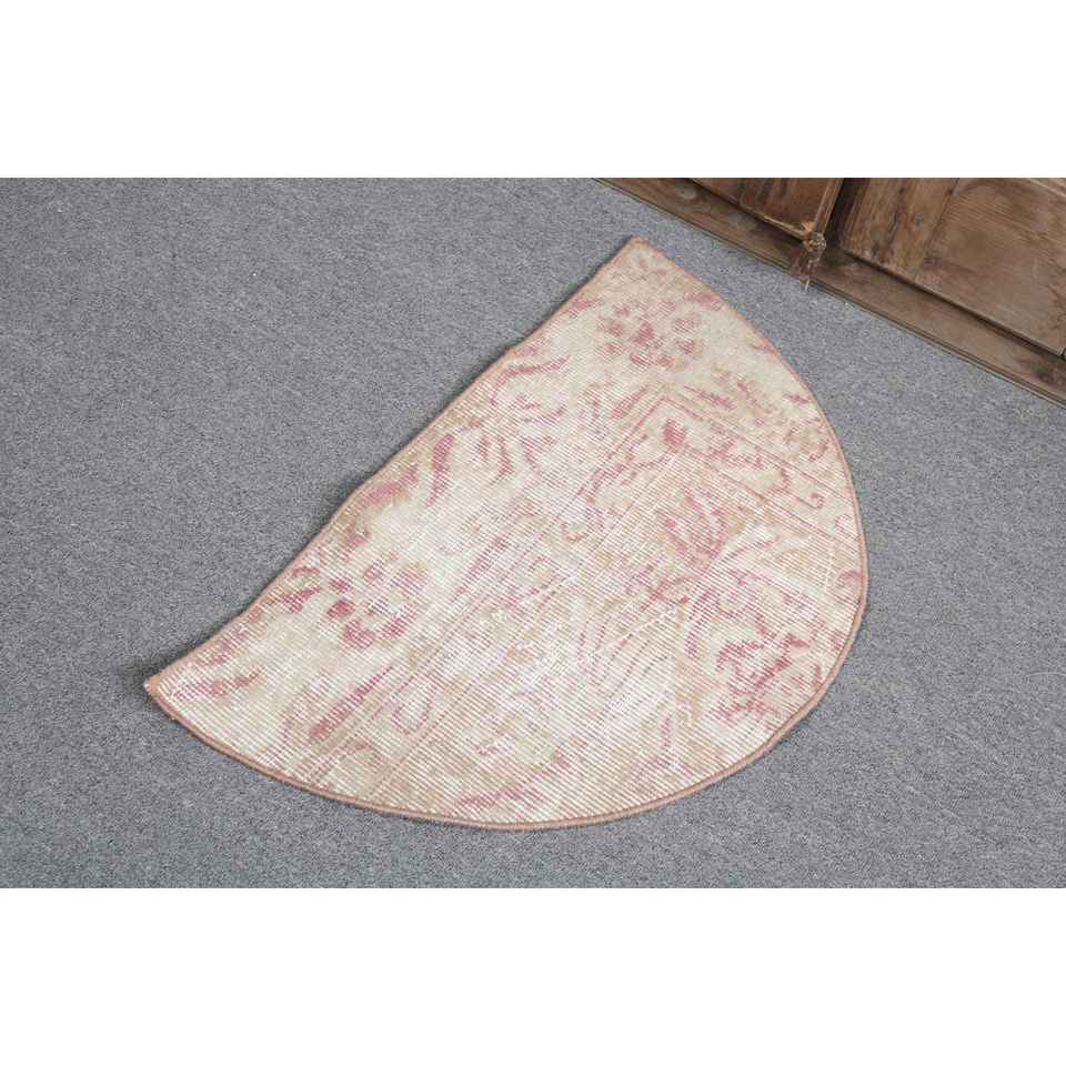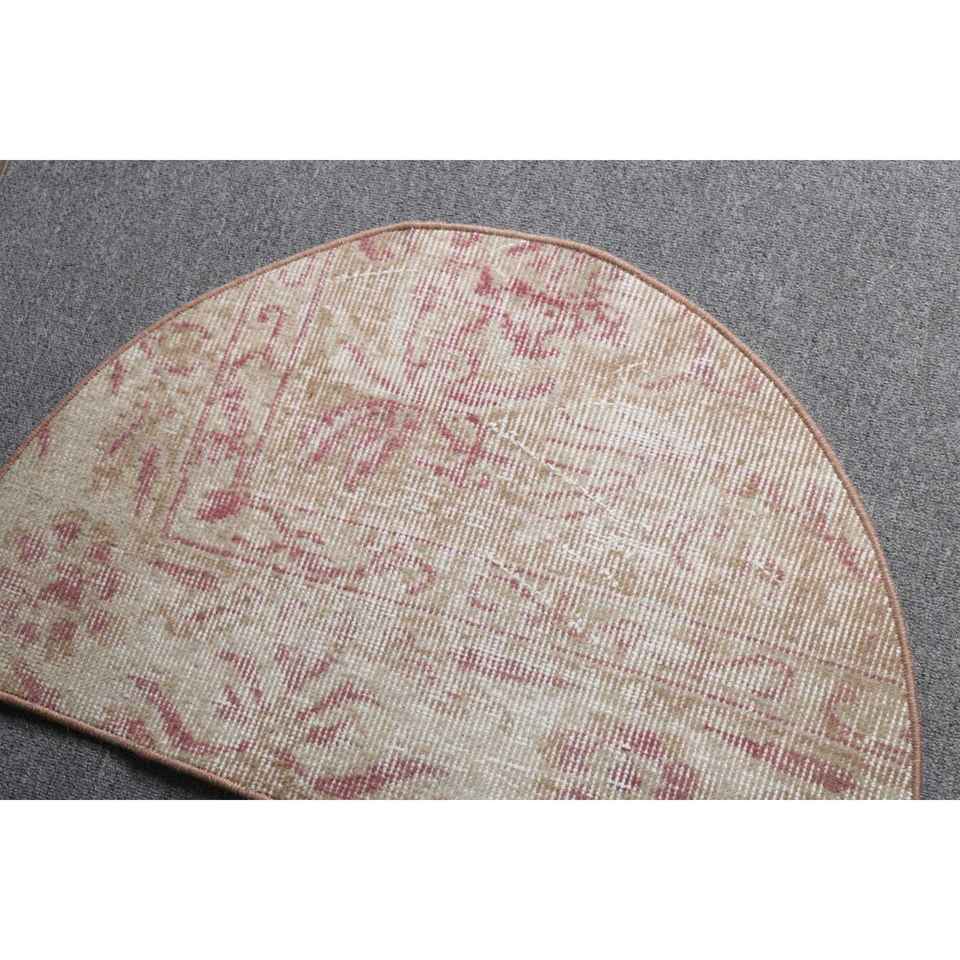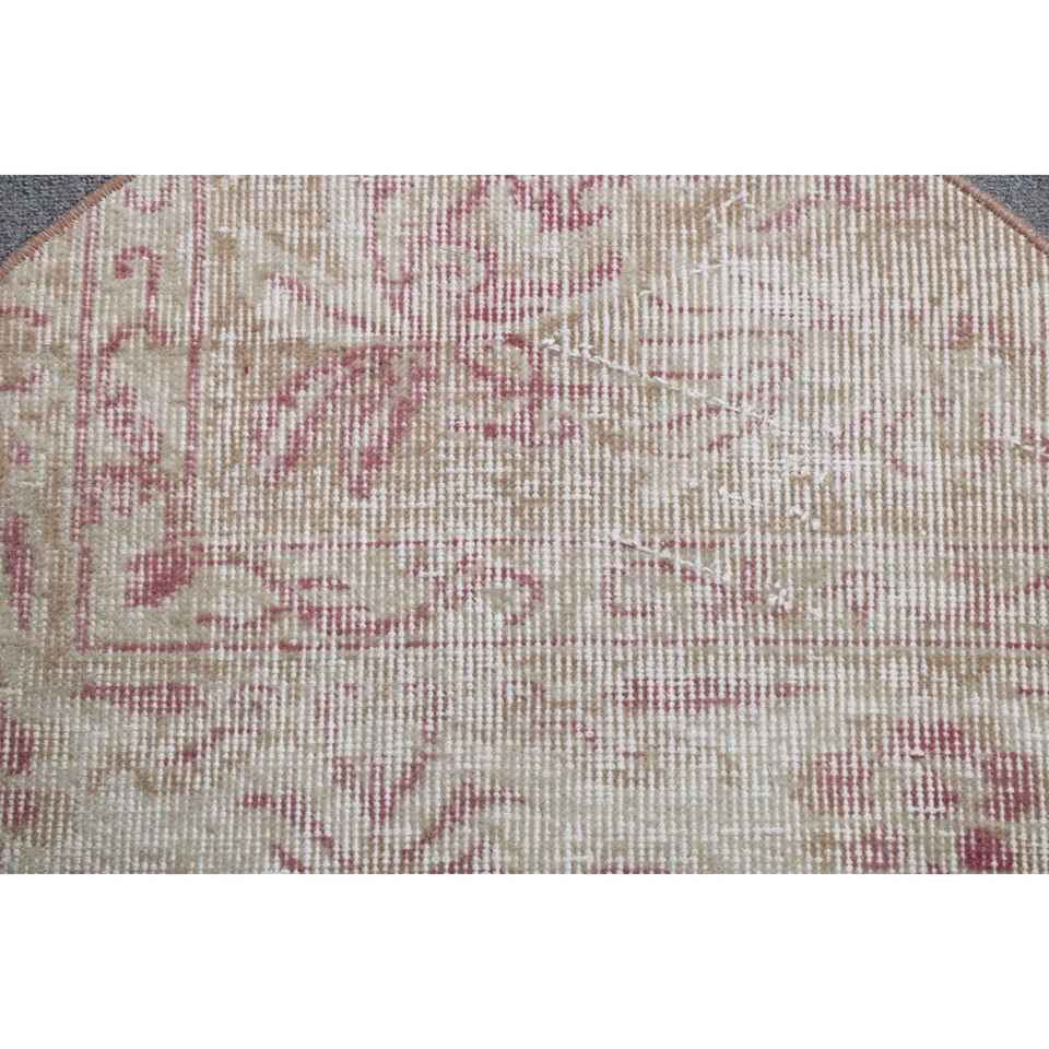 Alfombra Turca Vintage de 2.4x1.4 pies, Diseño Patchwork, Lana Beige con Base de Látex, Ecológica, Pelo Medio, para el Hogar