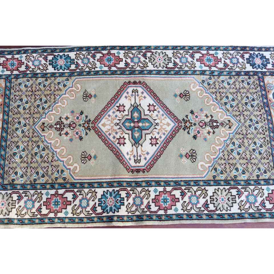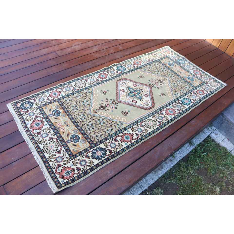 Alfombra de 2.4x5.2 pies, Alfombra Turca Vintage, Alfombra de Lana Azul y Roja Estilo Suroeste