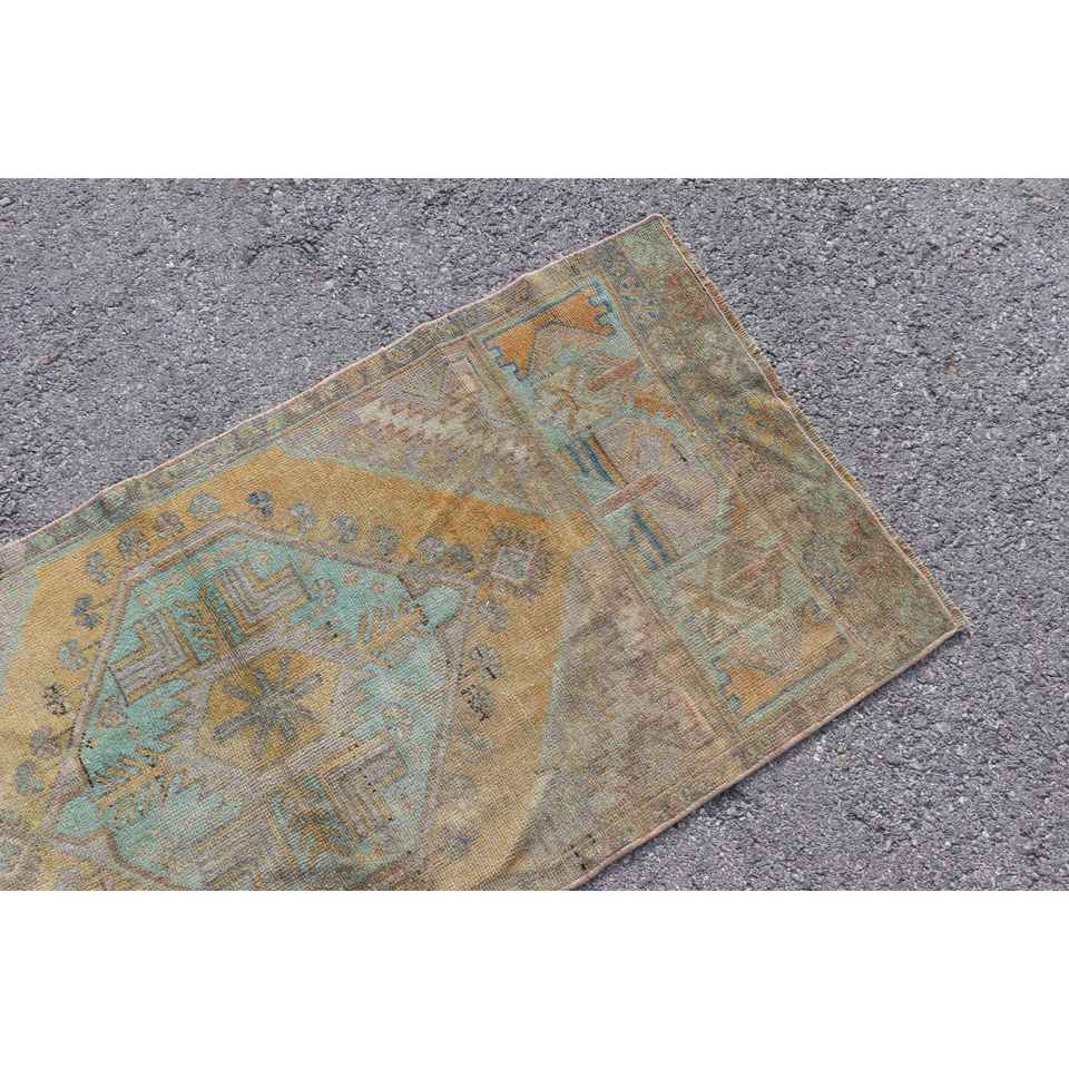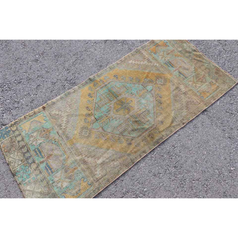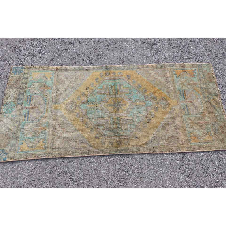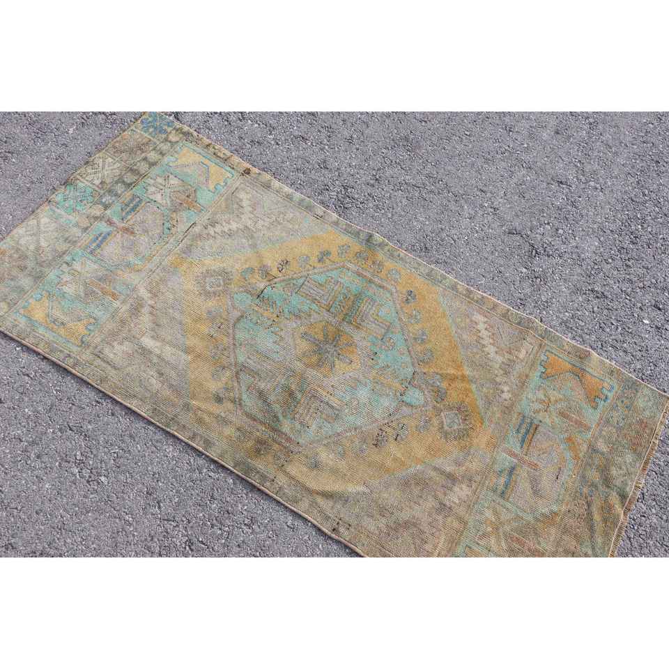 Alfombra de 2.4x5.3 pies, Alfombra Turca Vintage, Alfombra Abstracta Azul y Amarilla
