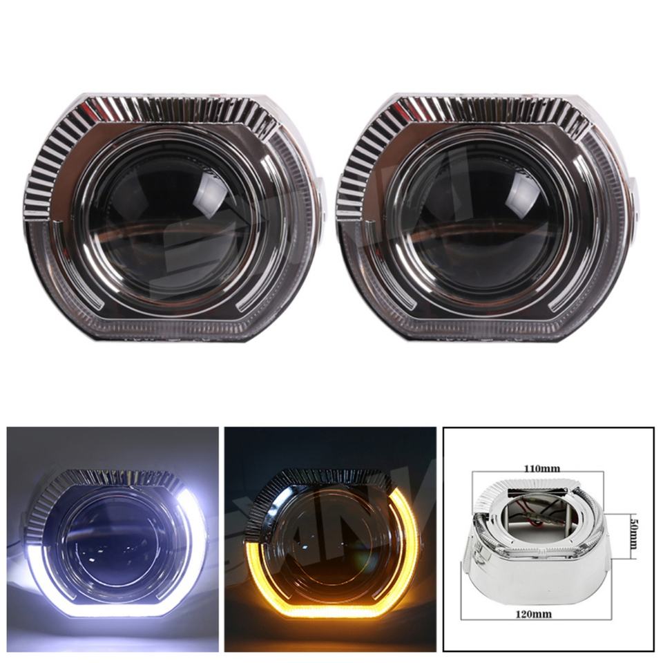 Anillos de Luz LED para Automóvil de 2.5 y 3 Pulgadas, Color Blanco y Amarillo, Accesorios para Automóvil