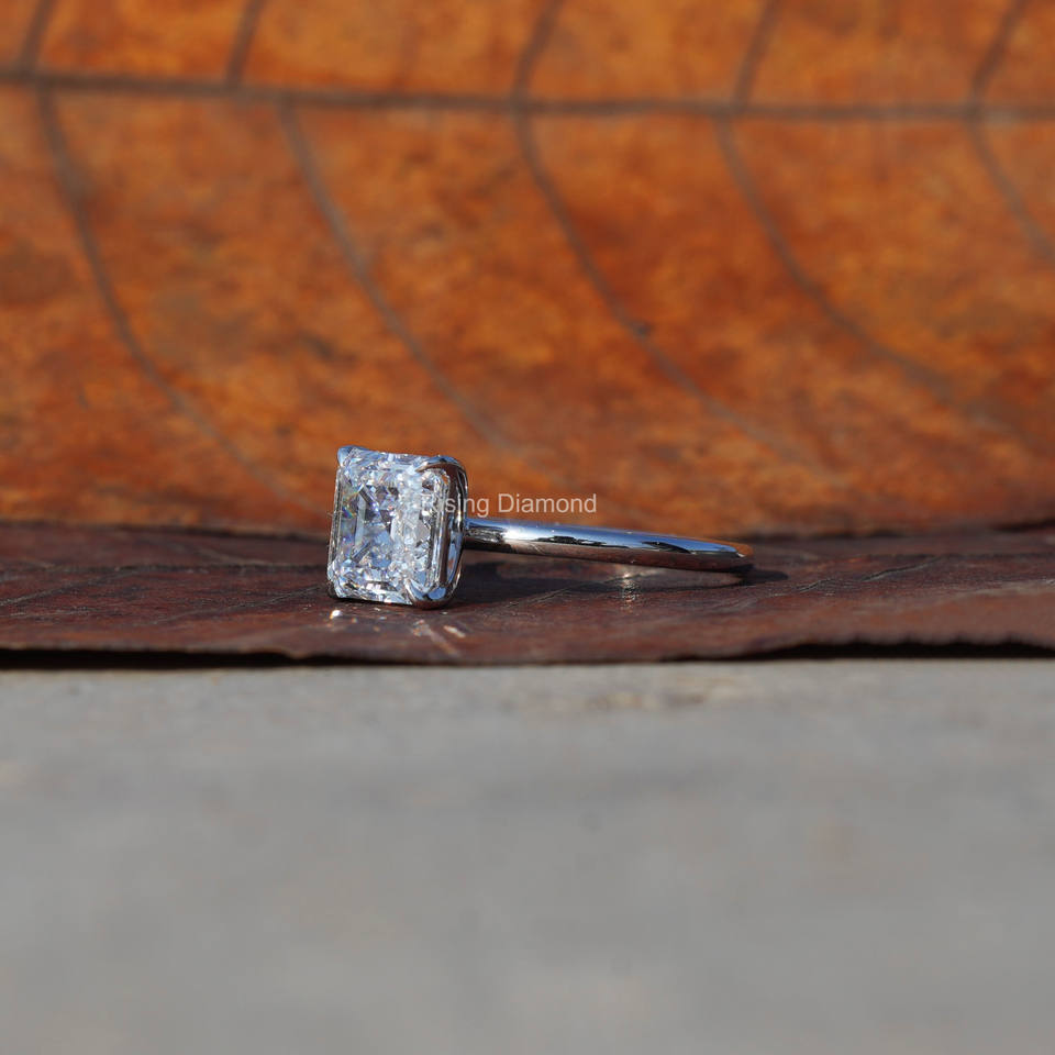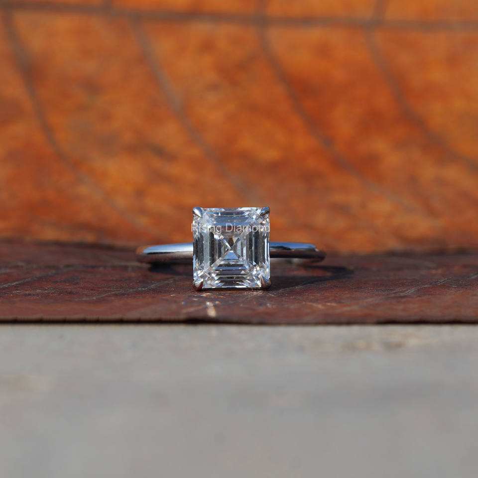 2,5 Ct Asscher Cut Lab Grown Solitaire Anillo de compromiso de Diamantes en Oro CVD Diamante Anillo de oro