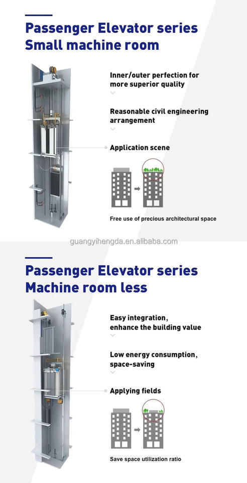 Ascensores Hidráulicos Pequeños para Pasajeros, de 2 a 5 Pisos, Personalizados para Interiores/Exteriores, sin Engranajes, con Capacidad de 400 kg, Mini Elevador Residencial