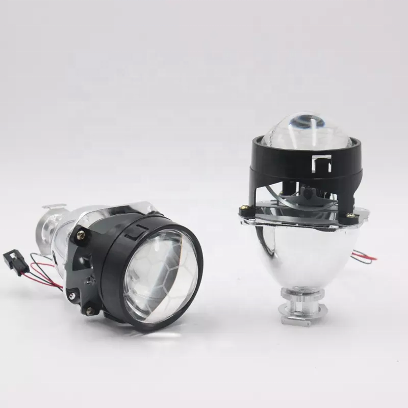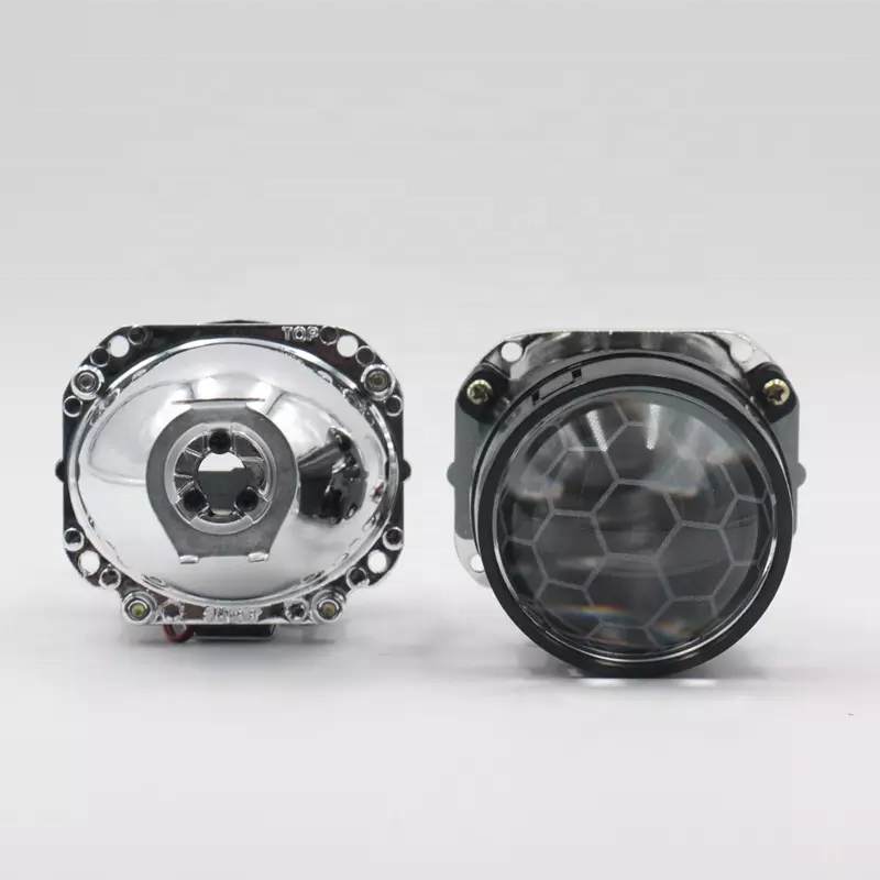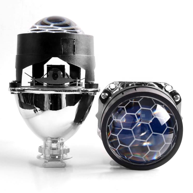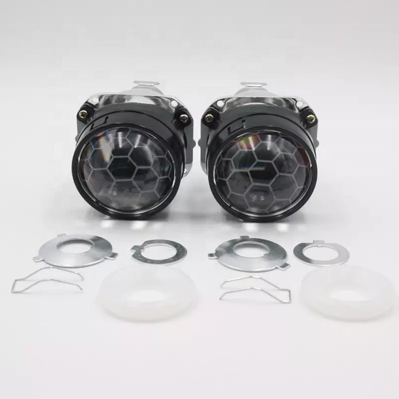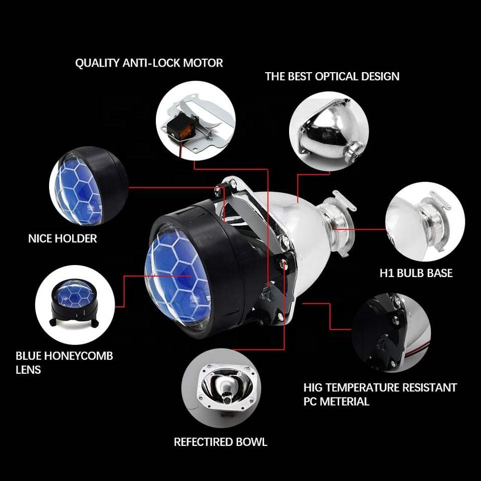 Lente proyector Bi-xenón mini de 2.5 pulgadas con recubrimiento azul y panal, DRL ojos de ángel con carcasa — kit de montaje para coche y moto, compatible con H4 y H7