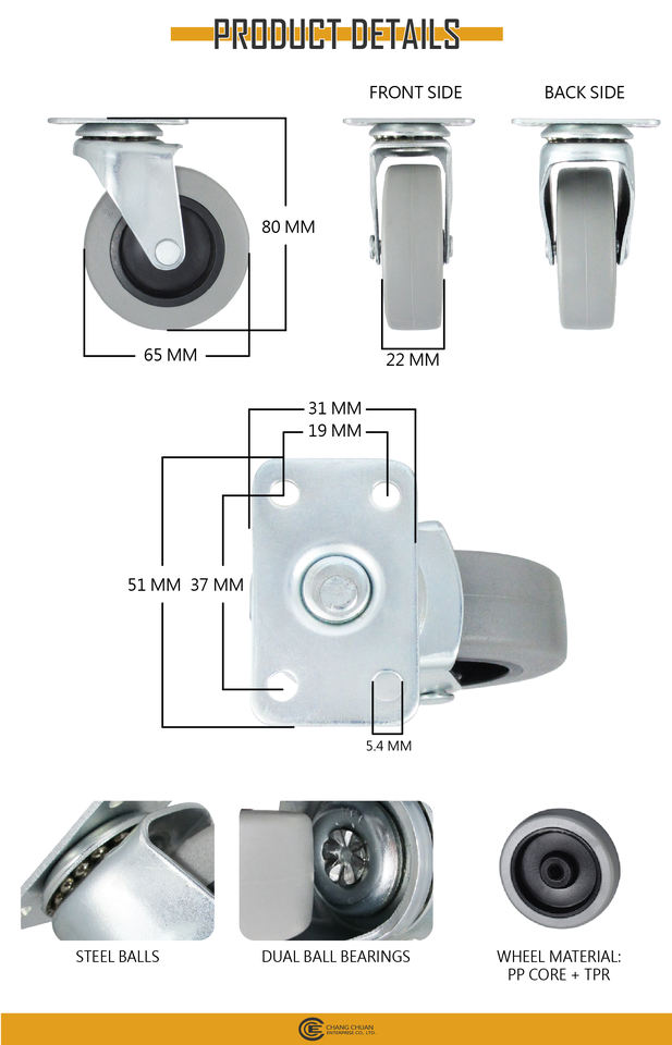 Nombre del producto:Rueda giratoria de TPR de 2.5 pulgadas con placa de montaje para muebles