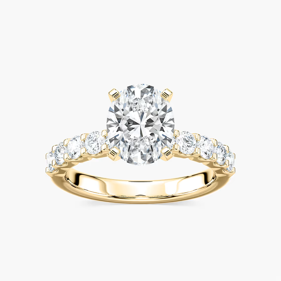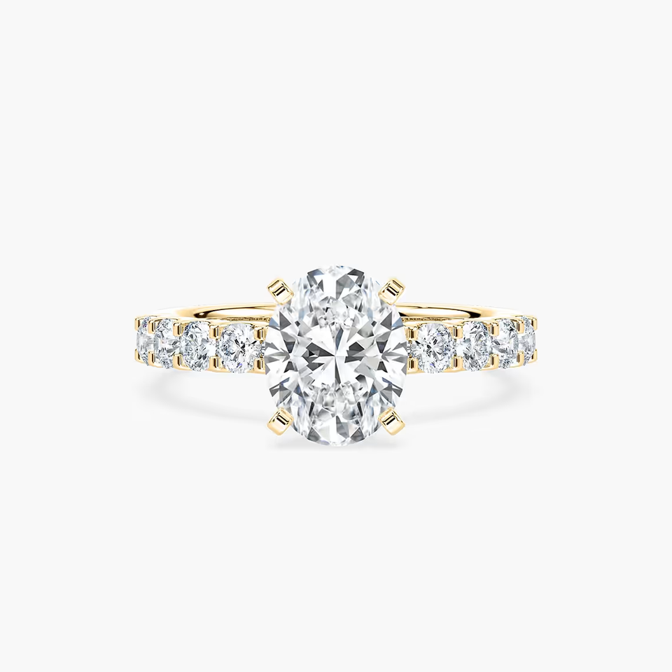 Anillo de Compromiso con Diamante Cultivado en Laboratorio de Corte Ovalado de 2.50 CTW, Certificado IGI, Oro Sólido de 14K, Banda Pavé, Anillo de Novia Solitario para Mujer